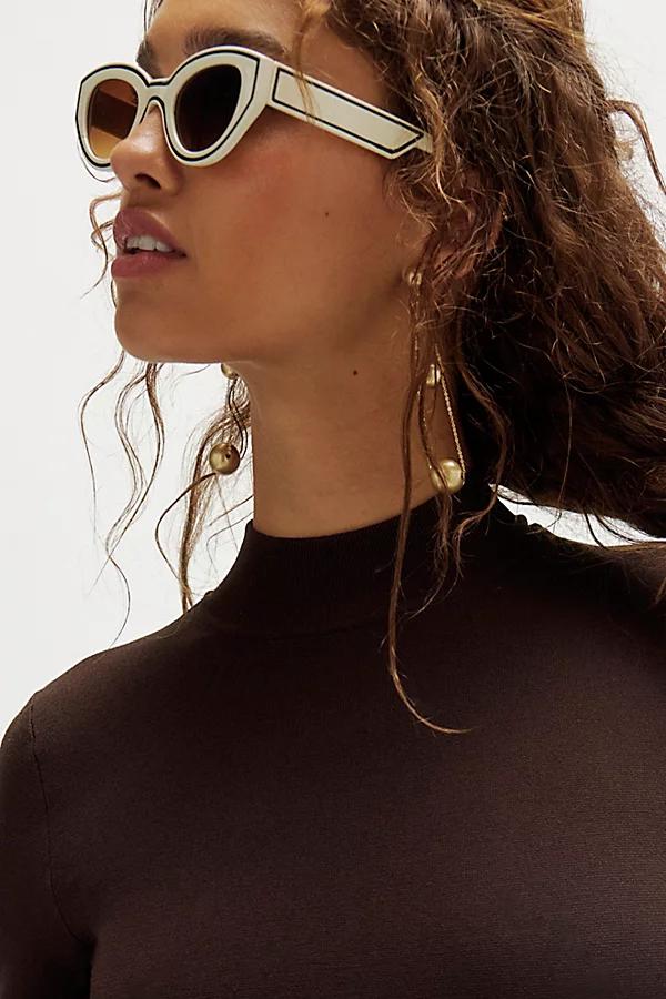 Contrasting outlines give a statement finish to these rounded cat-eye sunnies. * Oval shape * Thick temples * Fixed nose pads * Tinted lenses Joni Cat Eye Sunglasses by Free People in Creme With Black Lens