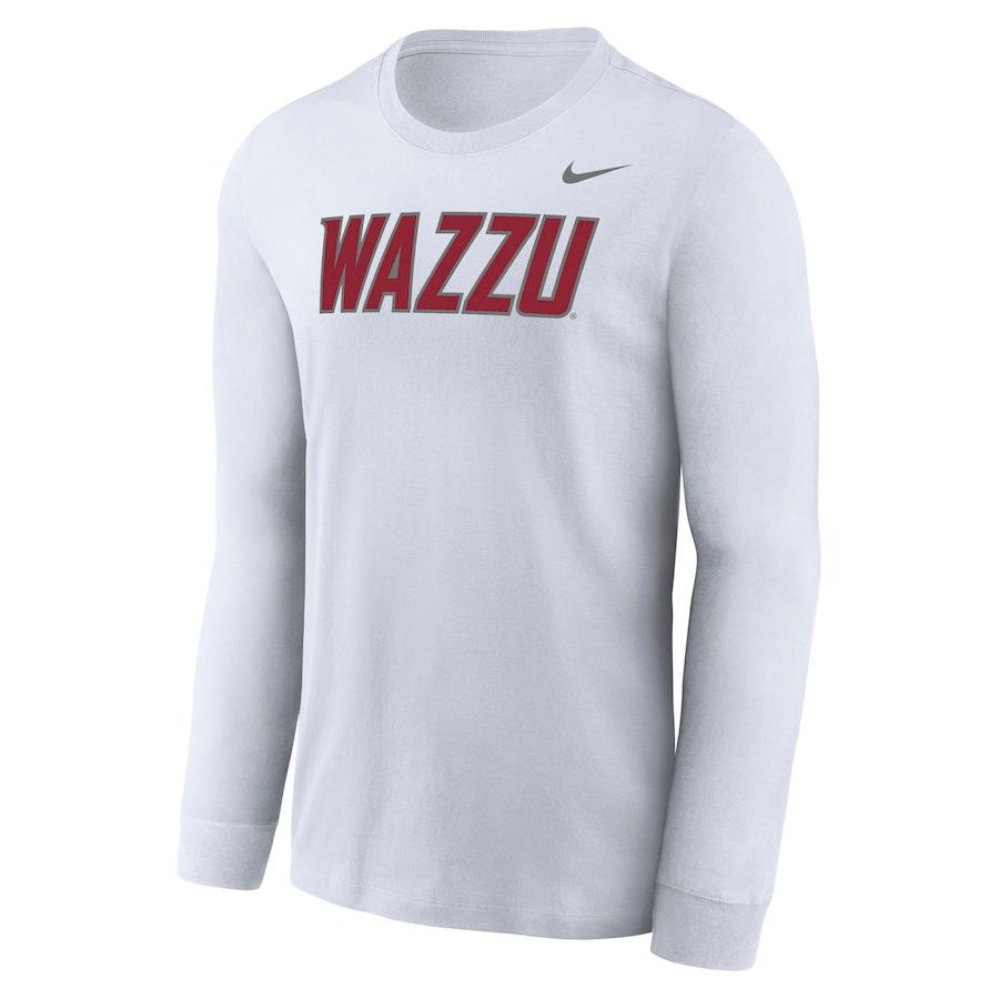 Stay dry and comfortable in this Washington State Cougars Wazzu Dri-FIT Long Sleeve T-Shirt by Nike. It features lightweight jersey fabric enhanced with sweat-wicking technology for continuous comfort. Large lettering printed across the front lets everyone know you're a dedicated Washington State Cougars fan.