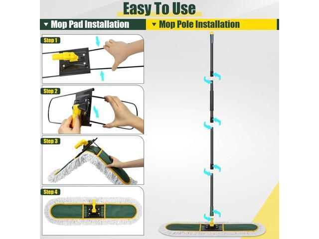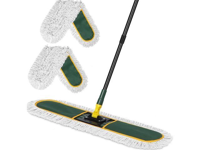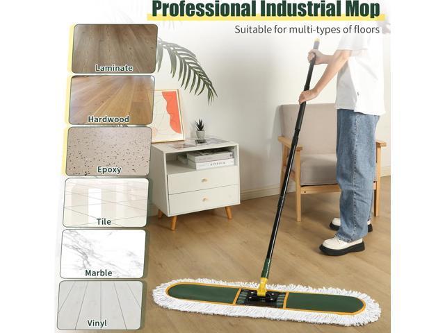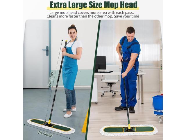 Profeesional Industrial Mop: Commercial dust mop comes with premium cotton mop pads to easily trap dirt and quickly absorb the water stains, Which perfect for wet mopping and dry sweeping. And with 39 large mop head can capture a larger cleaning area in one pass, Help you save more time to complete a clean Fit all kinds of floors: You can use this large dust mop to clean tile floors, wooden floors, marble floors, office floors, restaurant floors, kitchen floors, bathroom floors, garages, wall, gym, warehouses and so on