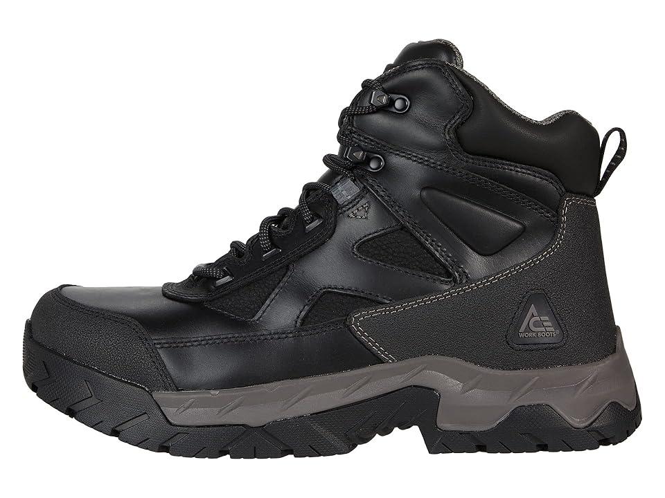 ACE Work Boots Glacier Steel Toe - Men's Shoes : Black : Solidly built for safety, the water-resistant, EH rated ACE Work Boots Glacier Steel Toe delivers effective slip-resistance and much more, meeting ASTM standards and offering a roomy ergonomic toe and ladder grab notches for easier climbing. ; Style# 74063. ; Oil and slip-resistant, non-marking rubber outsole meets ASTM F2913-2011 and SATRA Non-Slip Testing. ; Steel safety toe meets or exceeds ASTM 2413-11 and ASTM F2412-11 I/75 C/75 impact and compression, EH (Electrical Hazard) safety standards. ; Water-Resistant: Treated to repel liquids from the surface. ; Superior SFC slip-resistant outsole. ; TripGuard: Decreased trip hazard zone to allow fluid movement between slippery environments. ; Combination of environment-specific SFC lug patterns for all-new performance outsoles. ; Leather upper. ; Lace-up vamp. ; Removable premium insole offering lasting comfort and support. ; Pull loop in back. ; Textile lining and insole. ; Imported. Measurements: ; Weight: 1 lb 15 oz ; Shaft: 3 in ; Product measurements were taken using size 11, width M. Please note that measurements may vary by size. ; Weight of footwear is based on a single item, not a pair. | ACE Work Boots Glacier Steel Toe Men's Shoes Black : 10.5 M, Leather