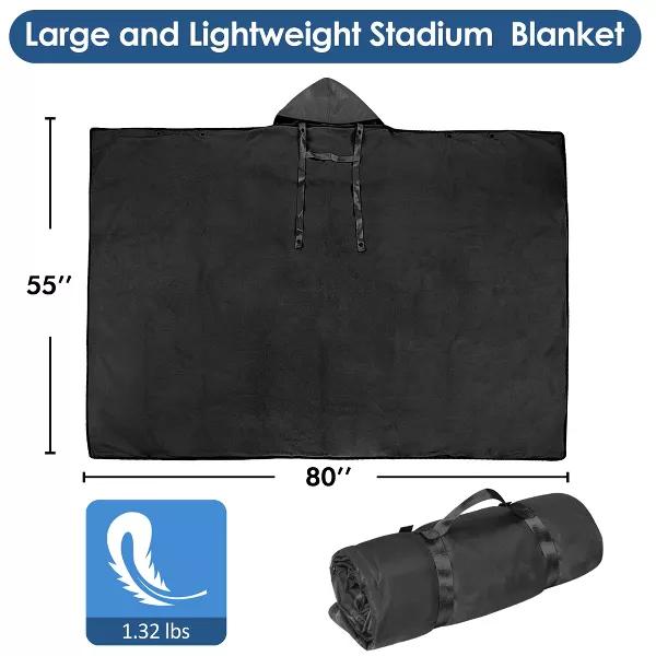 Catalonia Waterproof Outdoor Blanket for Cold Weather, Windproof Stadium Blankets for Sport Events, Wearable Weatherproof Blanket, Black