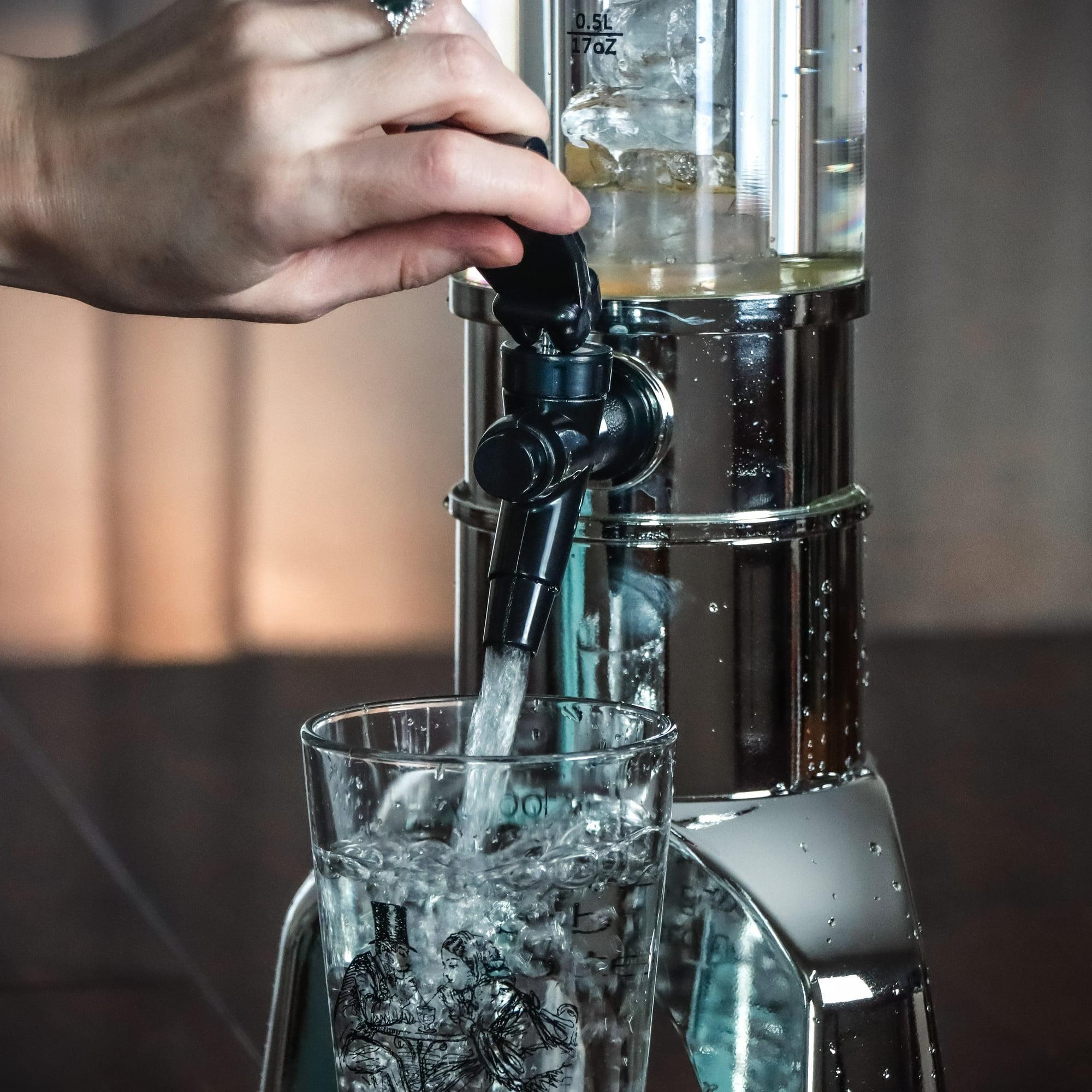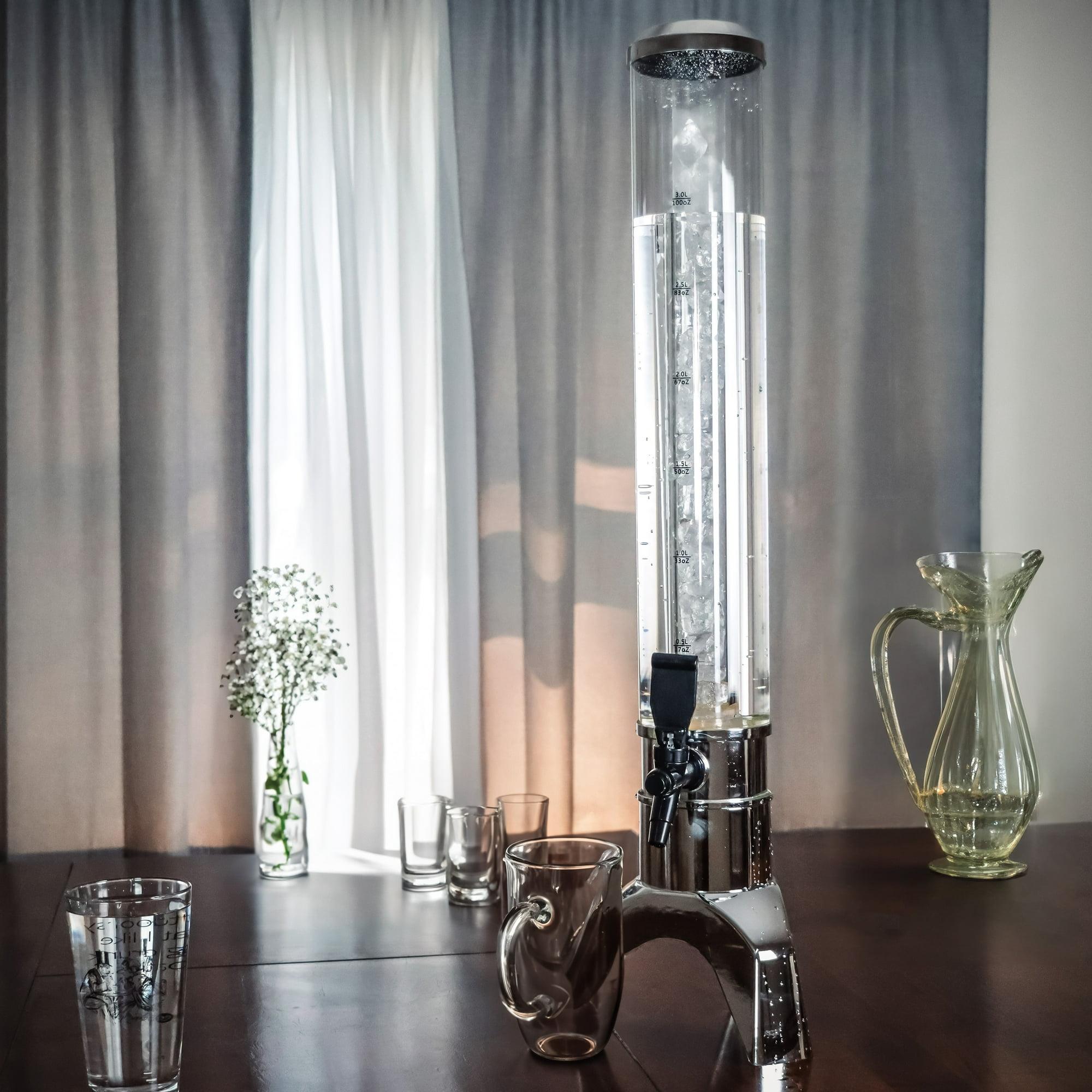 Be the hit of your next party with this tower beverage dispenser. The beverage dispenser measures 9.4 L x 7 W x 29.7 H and holds 3L/100oz. Of liquid. The tower has an ice tube that can be filled and fitted inside the tower to keep drinks cold for hours. The spigot allows for easy pouring of soda lemonade iced tea or other party drinks. Use for parties tailgates wedding showers engagements parties birthday parties and more. By Trademark Innovations. Ages 14+.