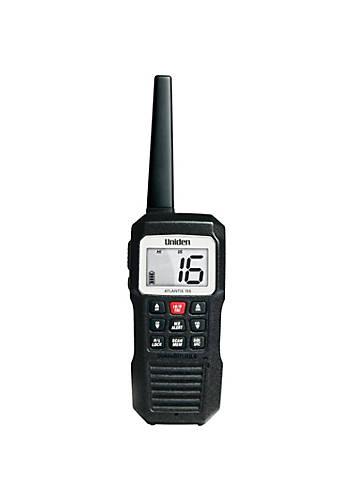 The Uniden ATLANTIS 155 Floating Handheld 2-Way VHF Marine Radio continues Unidens tradition of providing tough and reliable handheld radios. It features all NOAA weather channels, as well as all USA, international and Canadian marine channels. It also meets IPX8 submersible waterproof standards. The Atlantis brilliant backlit LCD display makes it easy to use, day or night for the power to go anywhere." Largest backlit display in class (.98 in. H x 1.6 in. W) White or amber backlight color 10-hour battery life Submersible and designed to float (IPX8) NOAA weather alert 1 watt/3 watt TX Includes antenna, AC charging cable, 950 mAh NiMH batteries, DC adapter, belt clip and hand strap