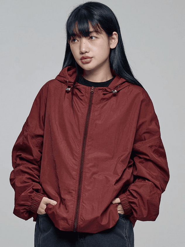 Nylon Hooded Relaxed Fit Windbreaker [Wine]