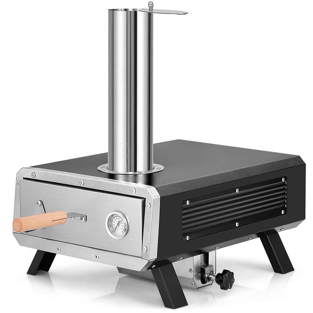 Wood Pellet Pizza Stove Outdoor Pizza Oven with 12 in. Round Rotatable Pizza Stone in Black