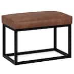 Reynolds 26 inch Wide Contemporary Rectangle Small Bench in Distressed Saddle Brown Faux Leather