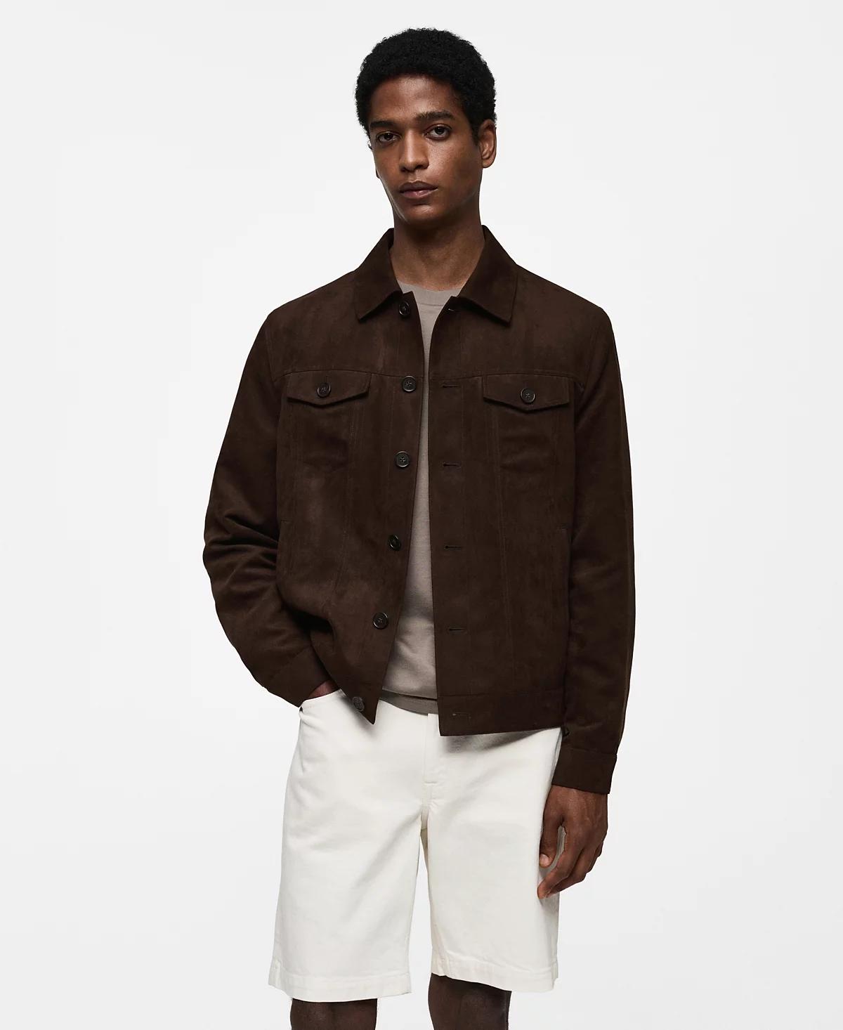 MANGO Men's Pockets Detail Suede-Effect Jacket
