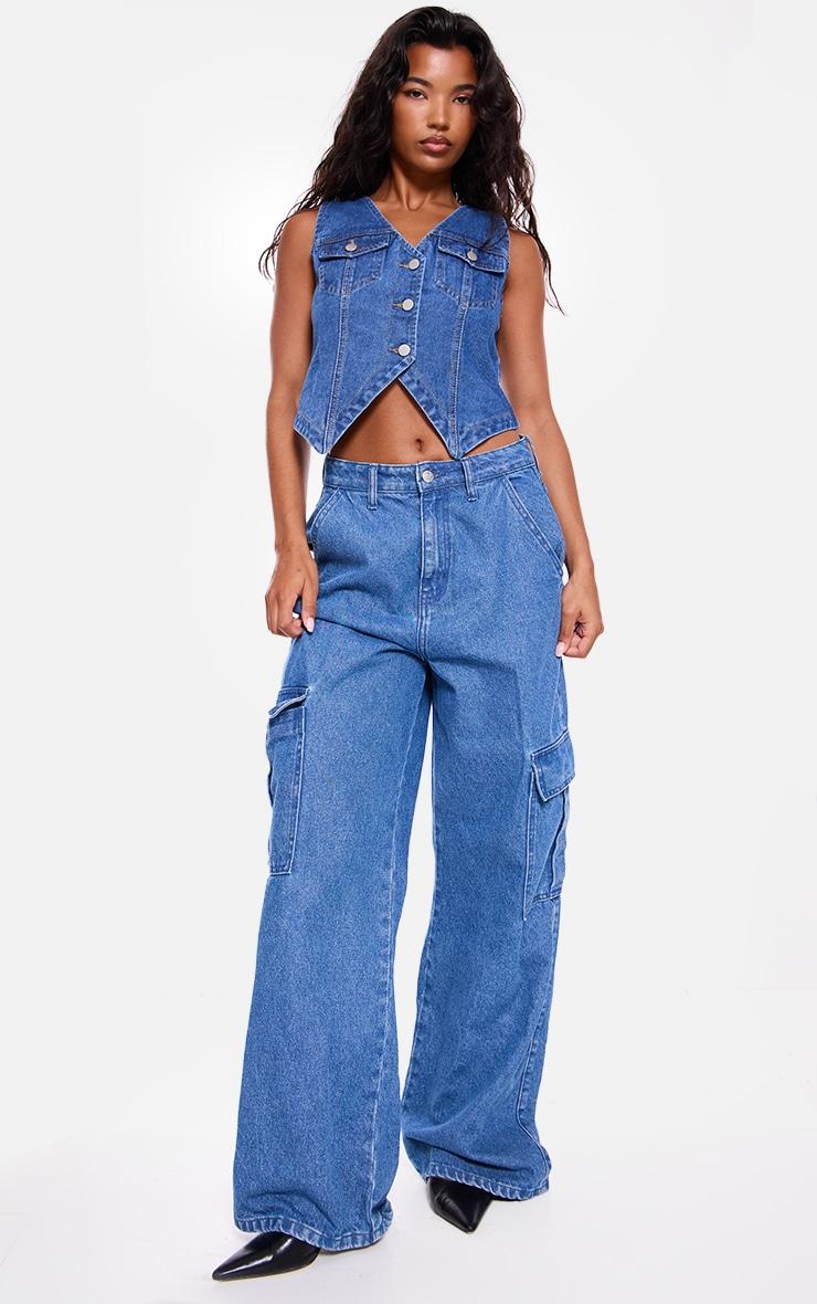 You'll look unreal in this indigo blue wash halterneck button front denim vest. Brought to you in an indigo blue wash denim material with a halterneck design and button front fastening, this denim vest is at the top of our wish list. Style with some wide leg denim jeans and your fave court heels for a combo we're crushing on this season.