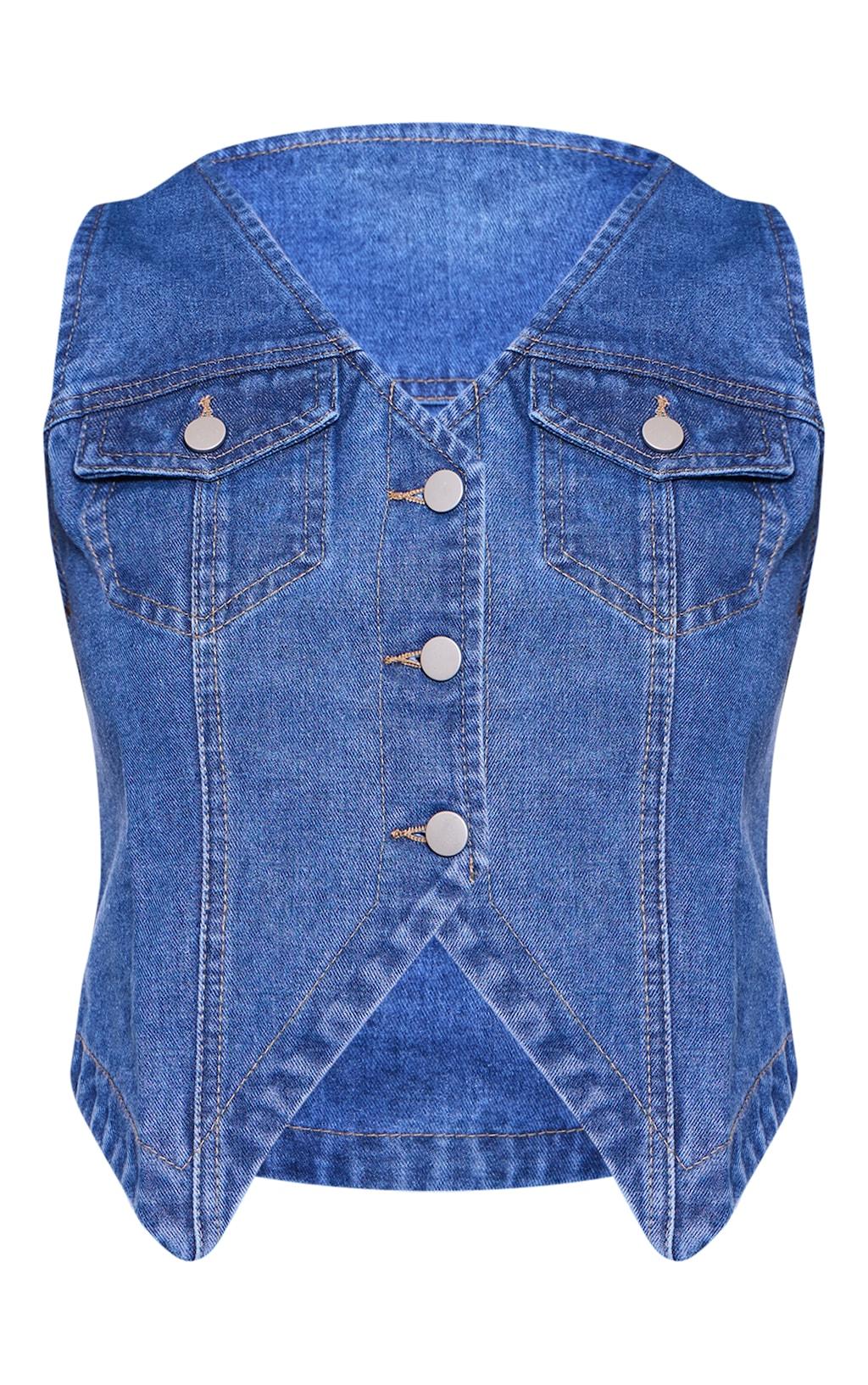 Indigo Blue Wash Halterneck Button Front Denim Vest