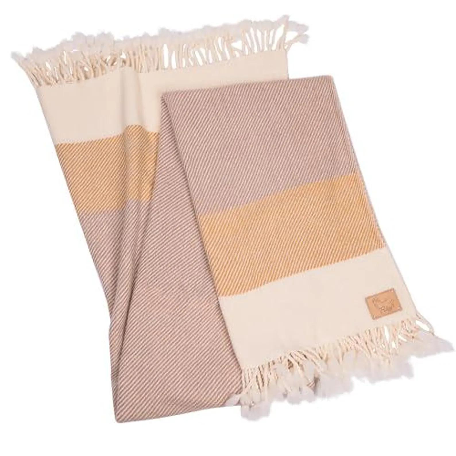 Ritzy Merino Wool Throw Blanket Ultra Soft 100 % Pure Merino Warm Lightweight Elegant Neutral Colors Classic Design Fringes