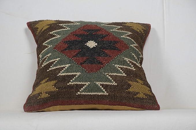 Indian Jute Pillow Cover Handwoven Rug Kilim Pillow Case 18x18 Inches Boho Home Decor Vintage Cushion Case Oriental Cushion Cover Decorative Throw Pillows (Pattern 14)
