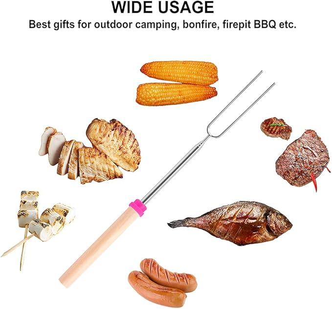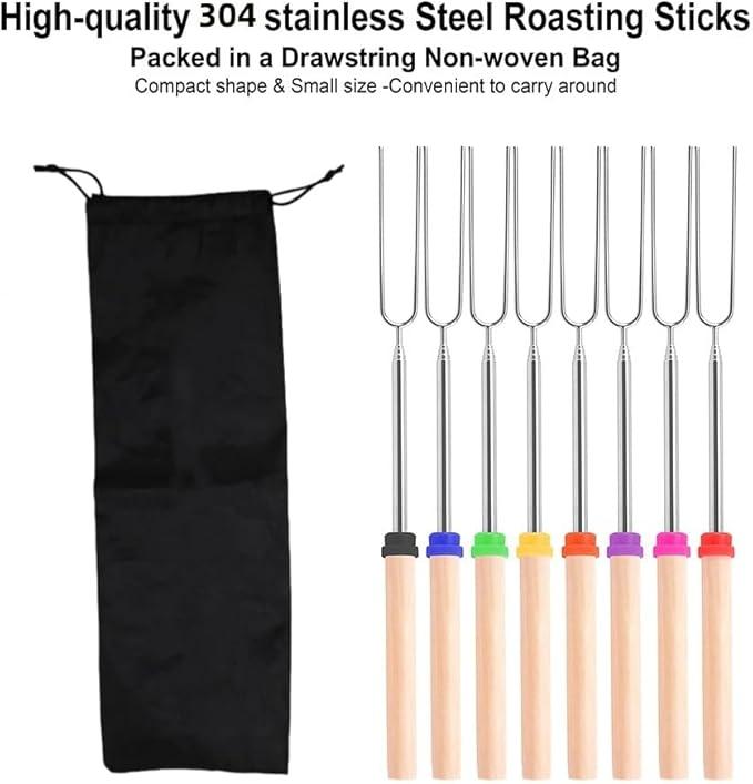 Marshmallow Roasting Sticks, 32Inch Telescopic Barbecue Forks Retractable Stainless Steel Smores Skewers with Anti-slip Wooden Handle for BBQ Outdoor Camping Campfire Firepit (8pack)