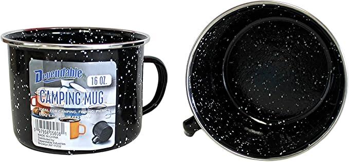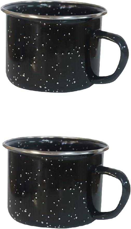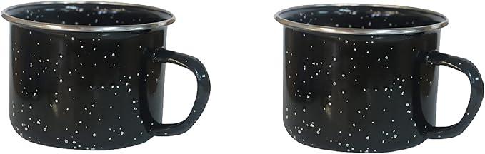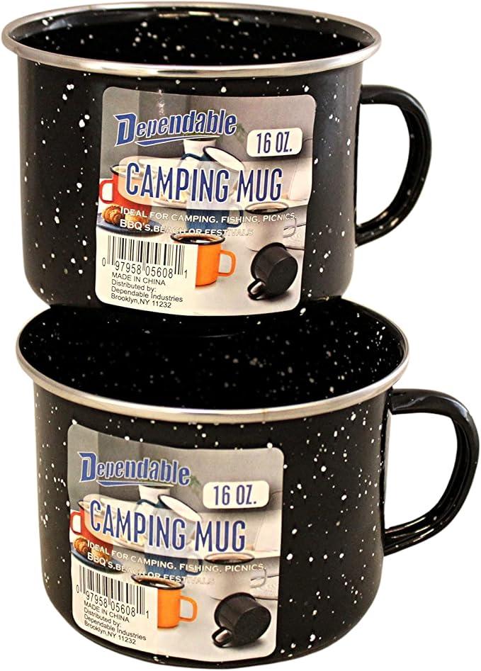 Dependable Industries 16oz Black Enamel Mugs (2-Pack) - Perfect for Camping & Home Use: Ideal for Hot/Cold Beverages, Soup, & More