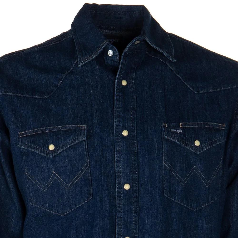 Wrangler Men's Western Work Long Sleeve Shirt Dark Denim XL