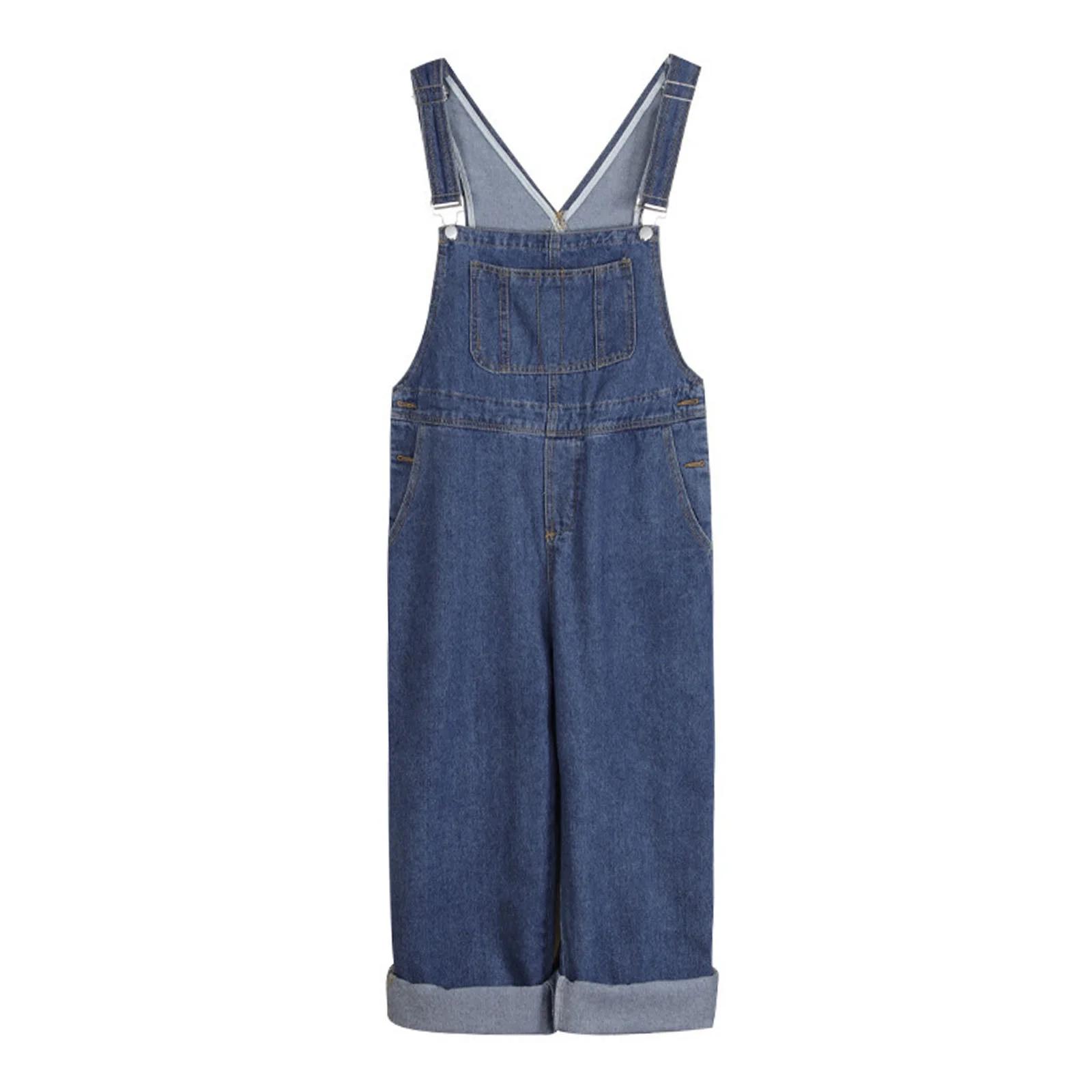 Lovskoo Women's Casual Stretch Denim Bib Overalls Denim Pants 90S Retro Classic Adjustable Straps Pocketed Jeans Jumpsuits Blue