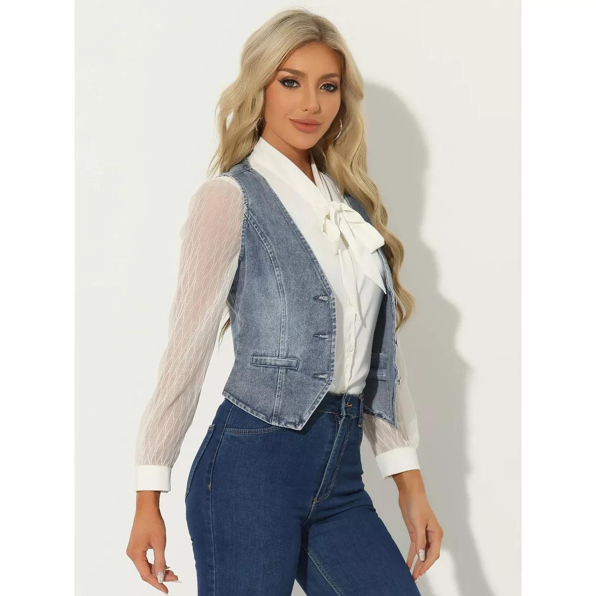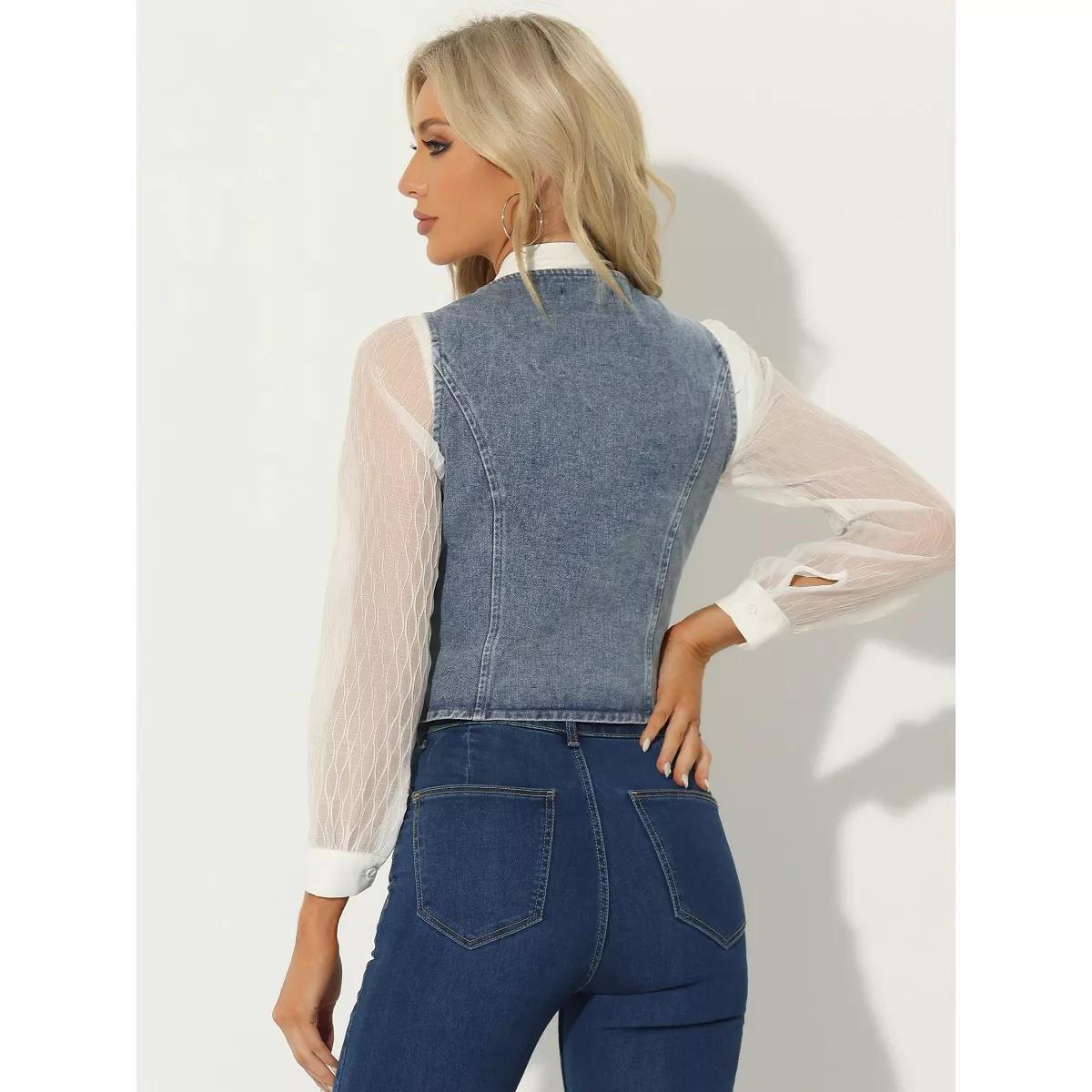 Allegra K Women's Denim Sleeveless V Neck Button Down Casual Waistcoat Vest