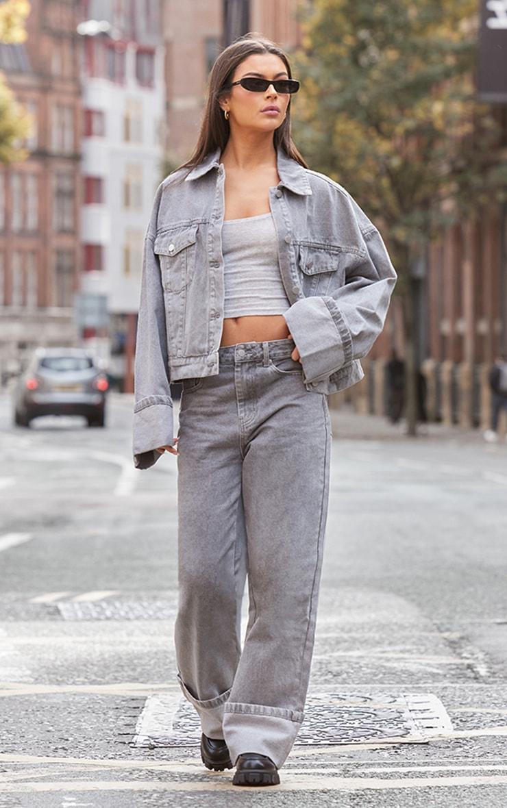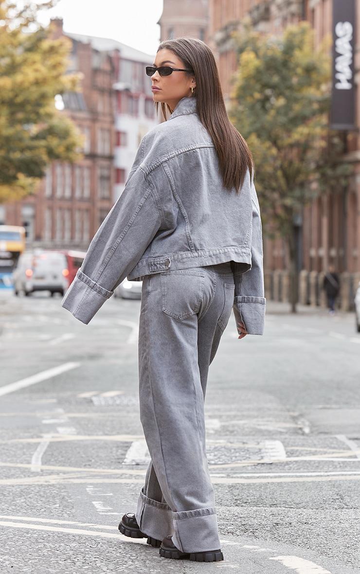 This light grey wash turn up cuff denim jacket is sure to be your next A/W go-to. Brought to you in a neutral light grey shade, with an edgy wash hue and turn up cuff design, this is all the new you need. Throw this over the matching jeans and a basic tee for the ultimate chic finish.