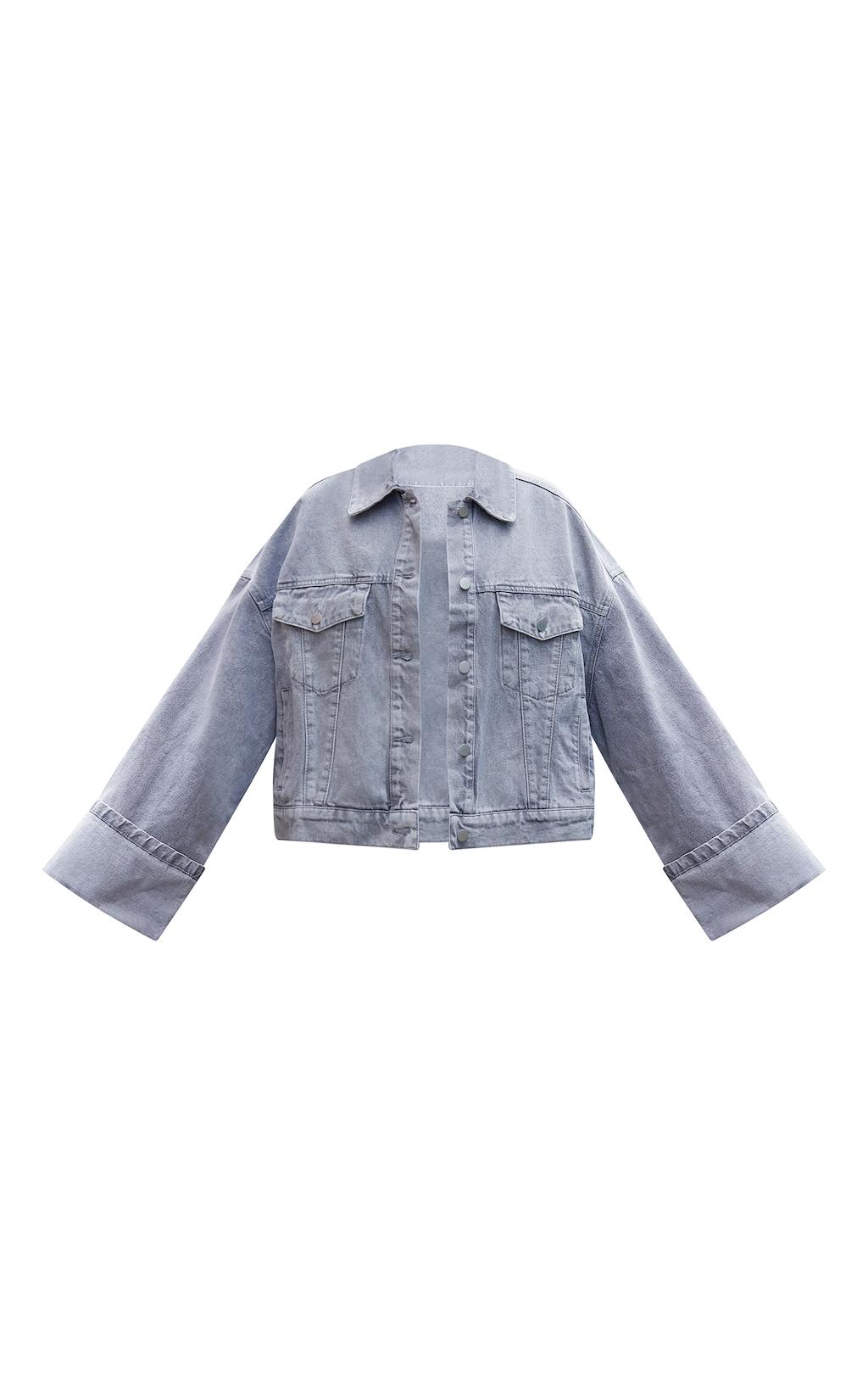 Light Grey Wash Turn Up Cuff Denim Jacket