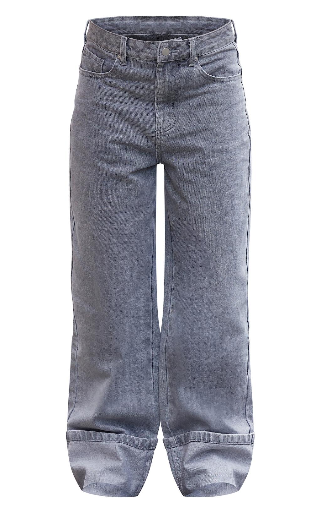 Light Grey Wash Turn Up Hem Wide Leg Jeans
