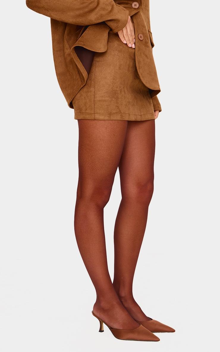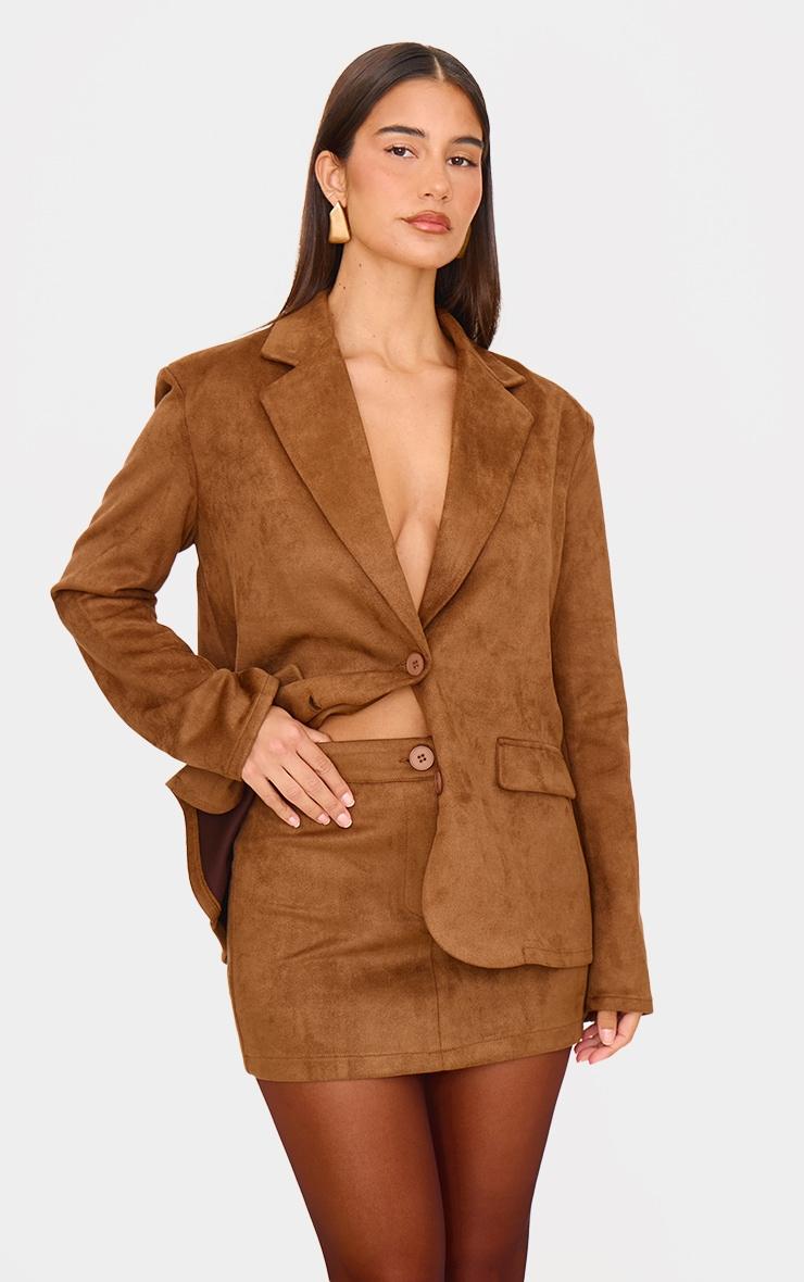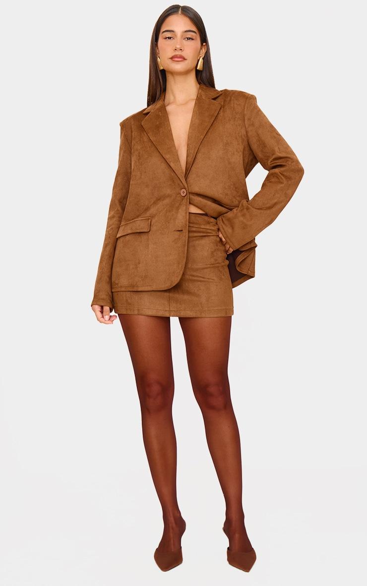 Get ready to earn some serious style points in this brown faux suede tailored mini skirt. Made from a brown faux suede material with a flattering tailored fit, how can you resist? Style this mini skirt with the matching jacket, sheer tights and court heels for a look we just can't get enough of right now.