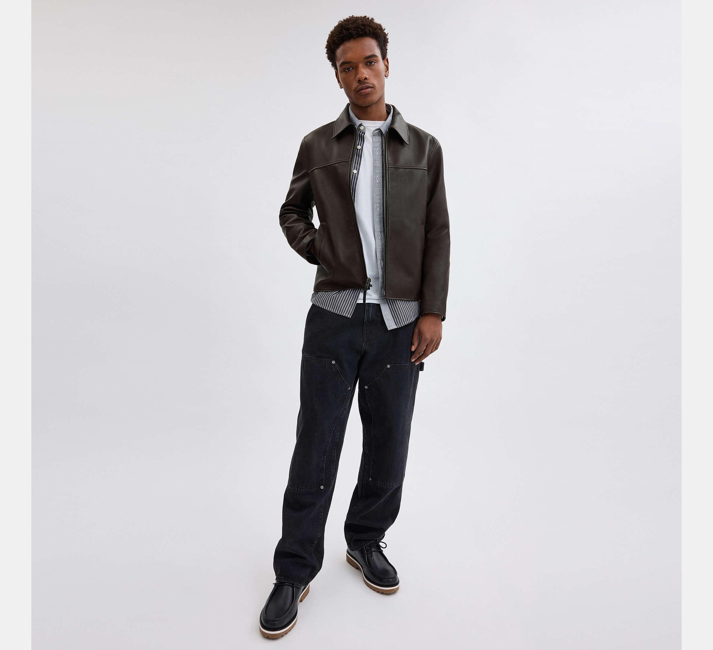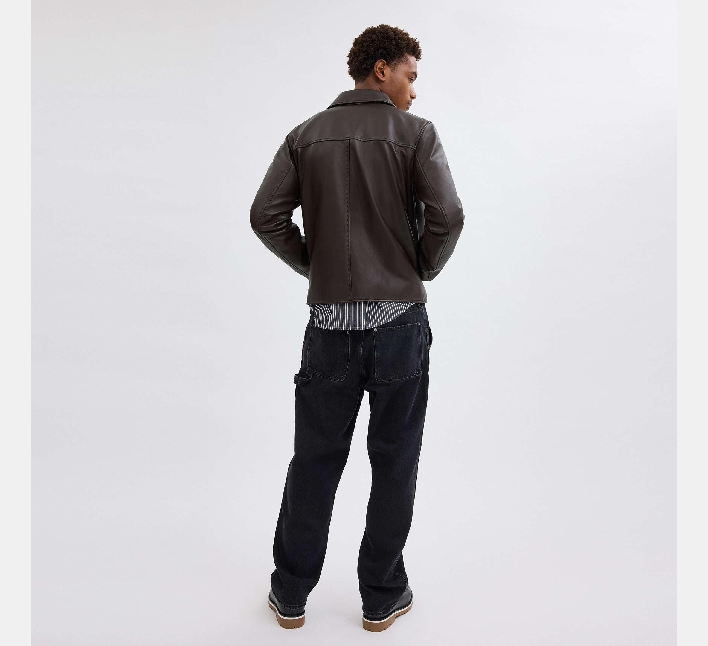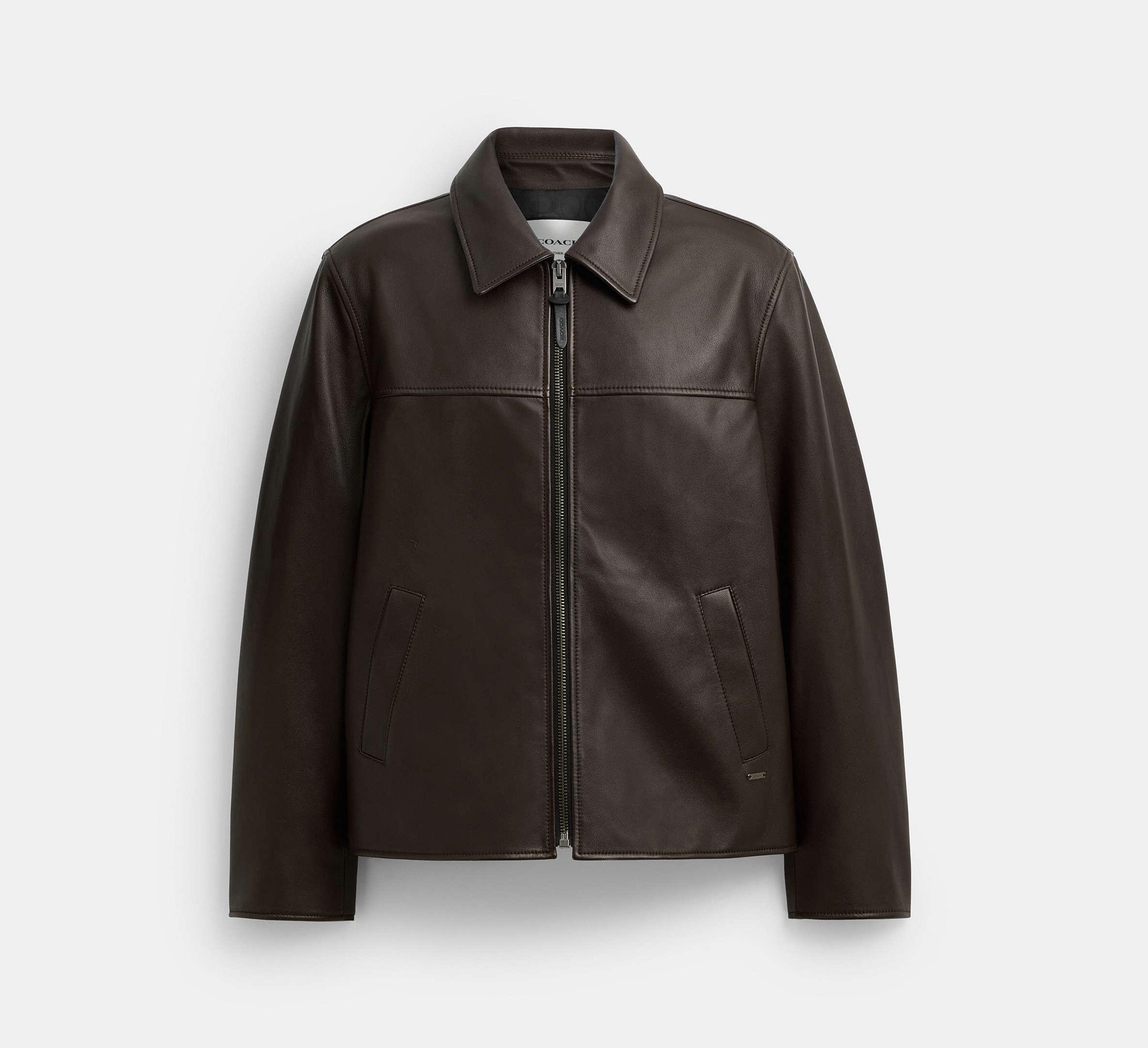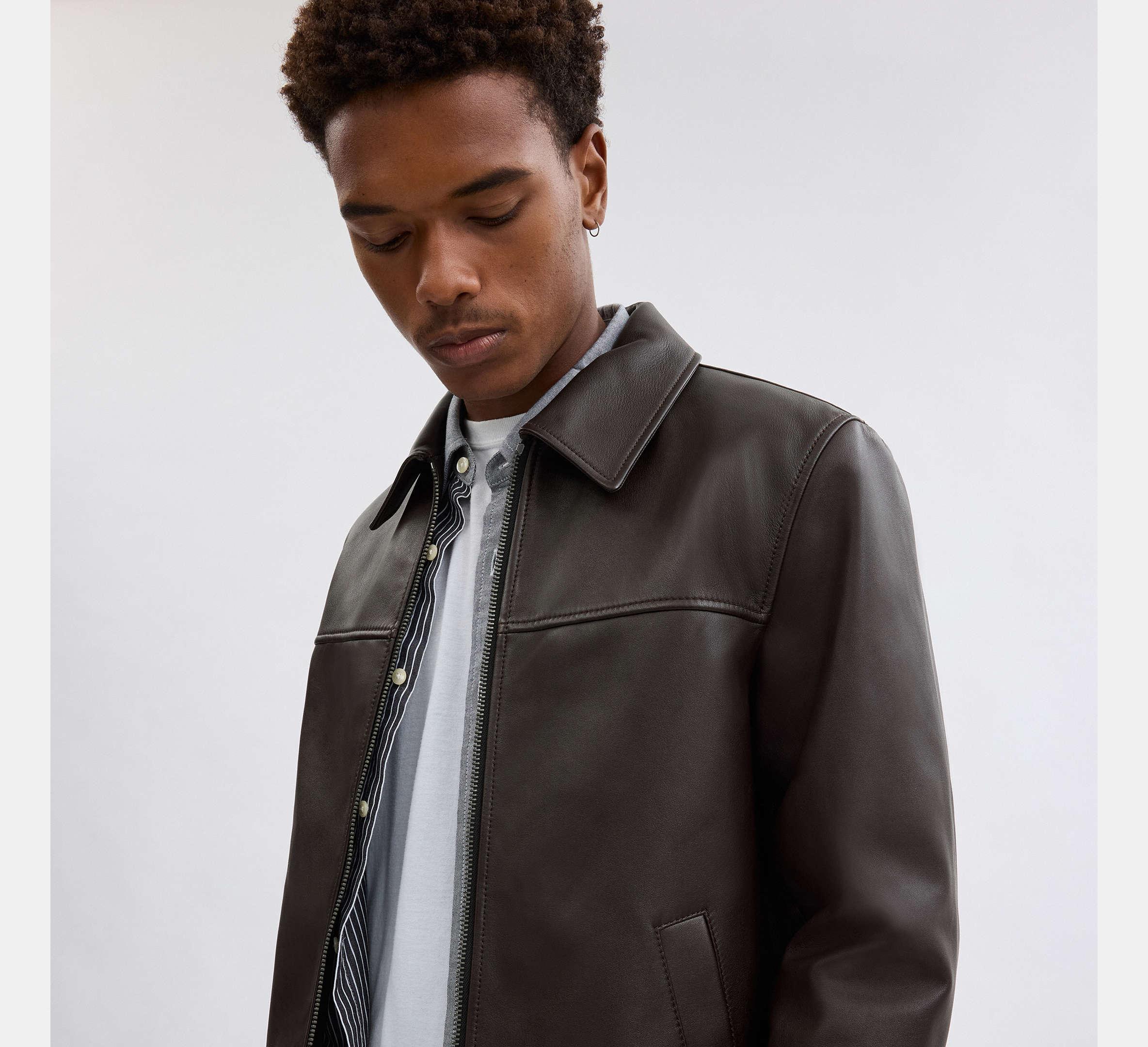 Length: 26.0". 100% sheep leather. Leather details. Body lining: 58% recycled polyester, 42% viscose. Sleeve lining: 56% polyester, 46% viscose. Zip closure. Slip pockets. Clean by leather specialist. Leather details.