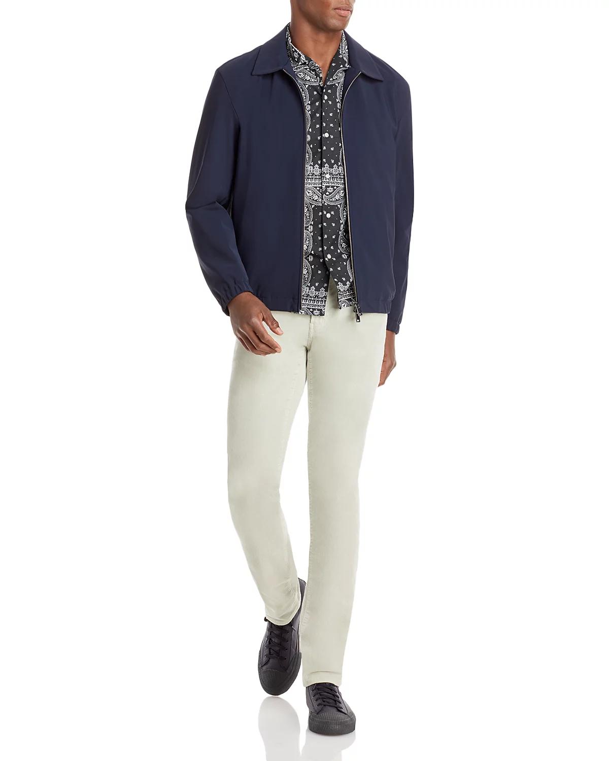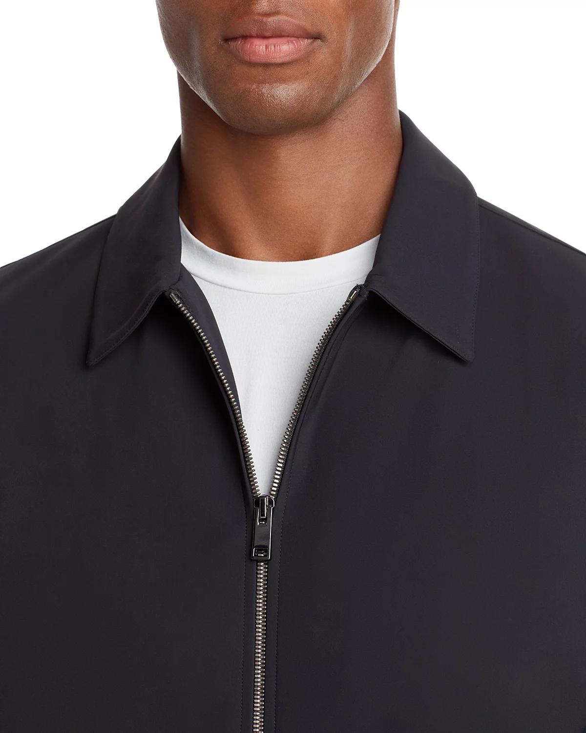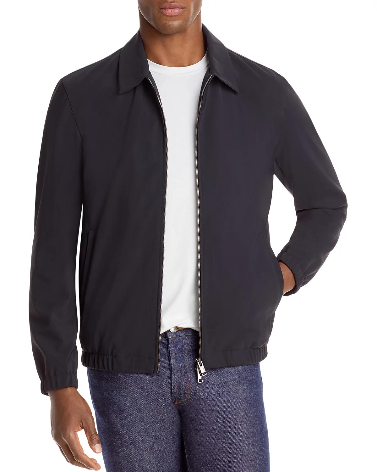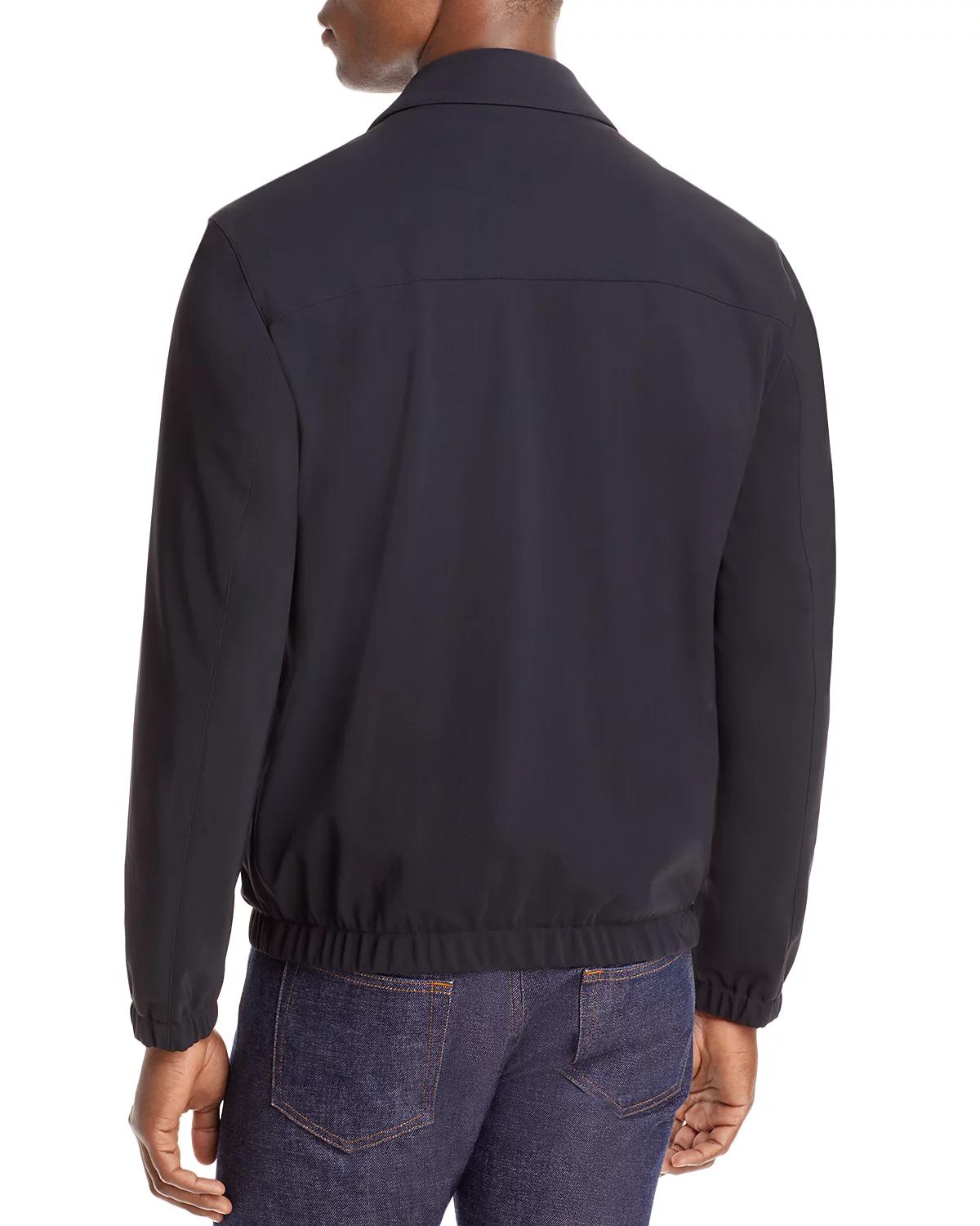 Spread collar. Long sleeves, elasticized cuffs. Front dual zip closure. Side slit pockets. Elasticized hem. Wrinkle- and abrasion-resistant knit. Quick drying and UV protective. Partially lined. Imported.