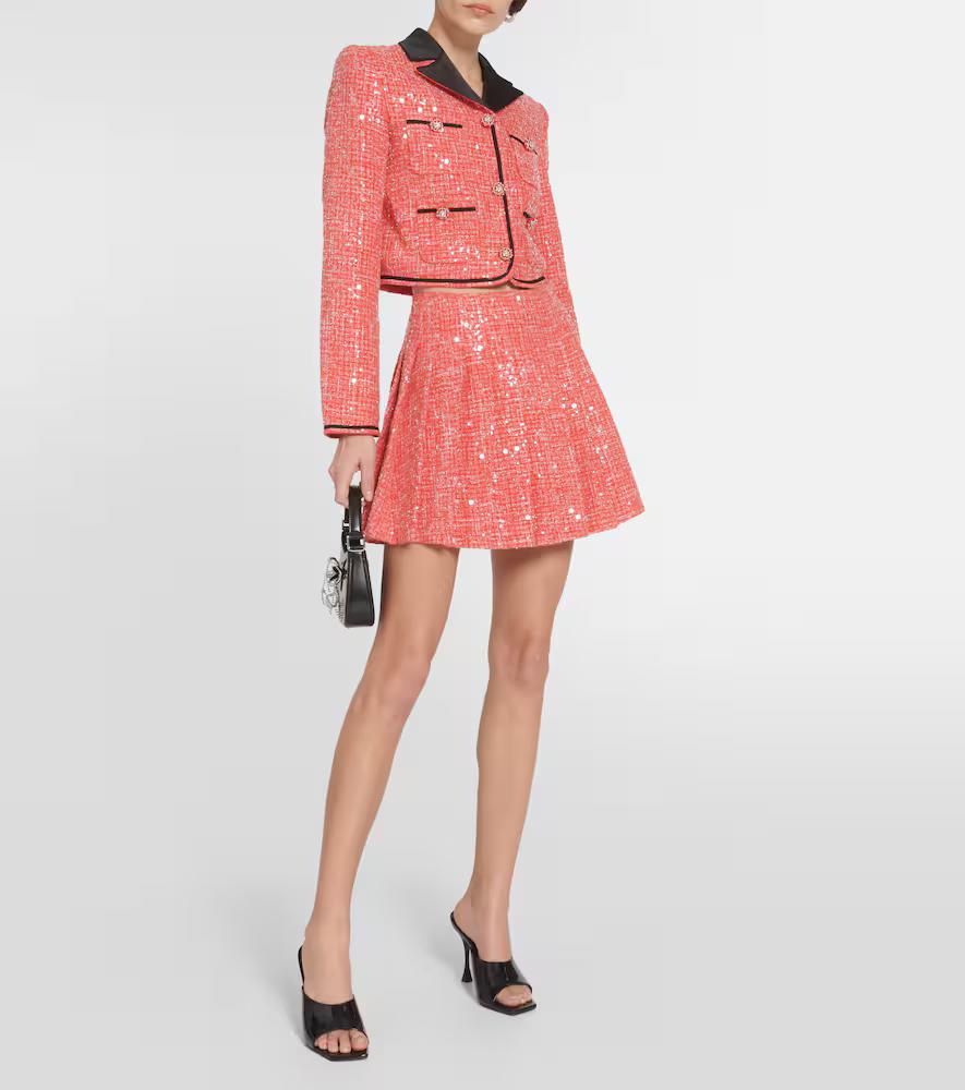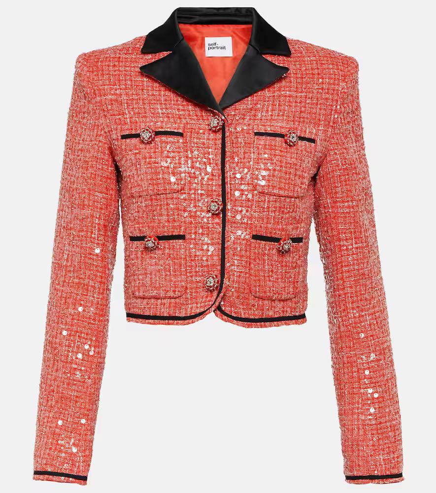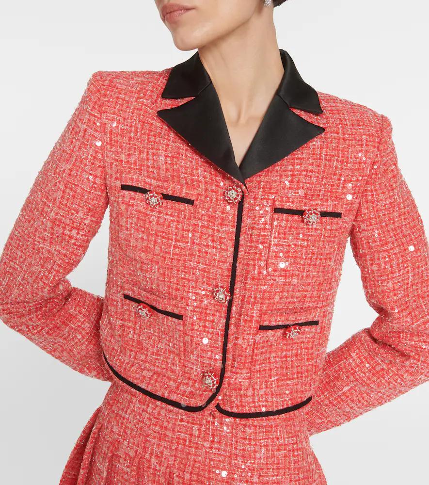 Material: 90% polyester, 9% viscose, 1% metallic fibres. Care instructions: dry clean. Made in China. Designer color name: Red. Material II: 100% polyamide. Material III: 100% polyester. Lining: 100% polyester. Details: 98% polyester, 2% elastane. Closure: snap-buttoned front. Pockets: patch pockets, breast pockets.