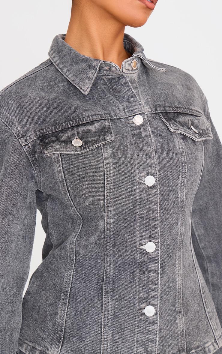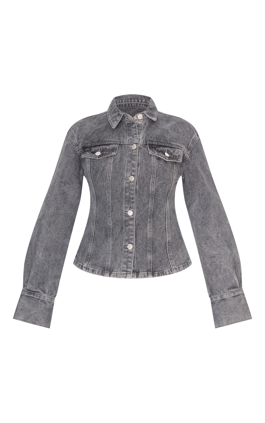 Grey Long Sleeve Cinch Waist Denim Jacket