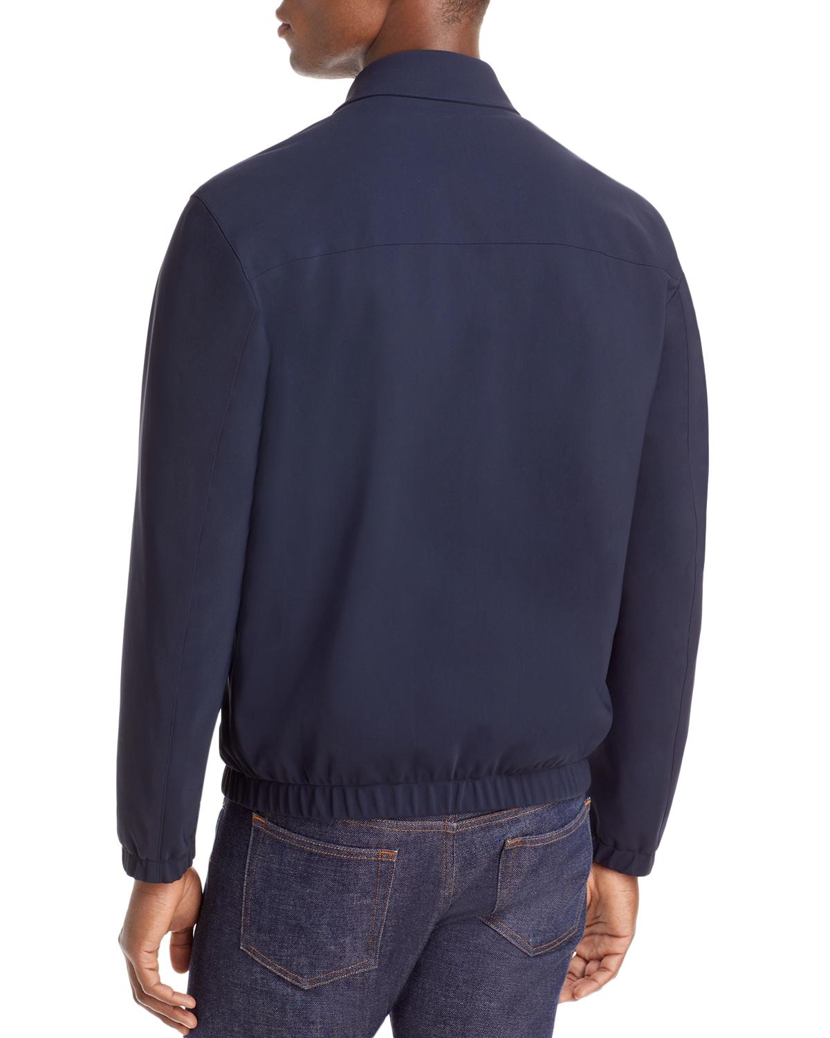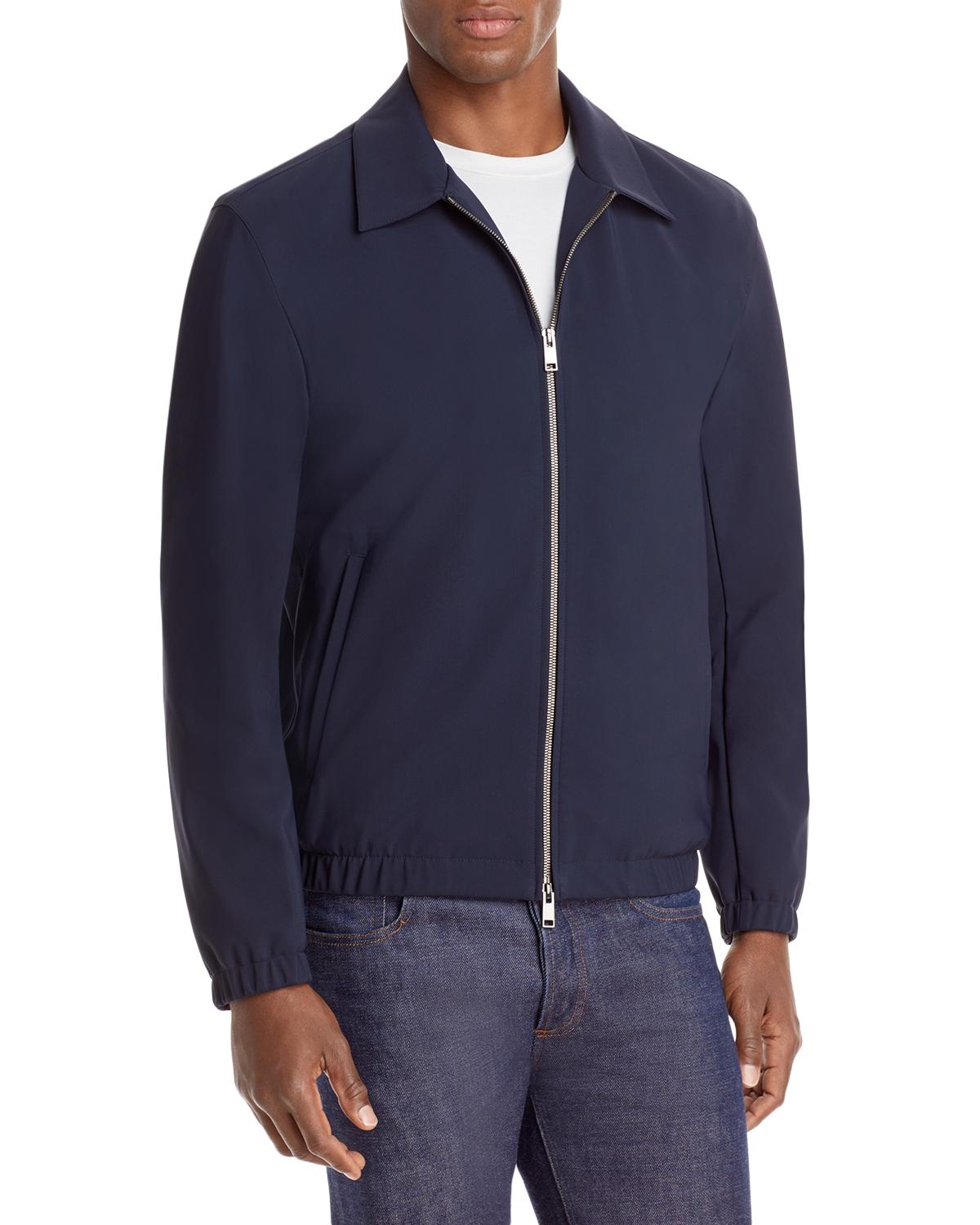 Spread collar. Long sleeves, elasticized cuffs. Front dual zip closure. Side slit pockets. Elasticized hem. Wrinkle- and abrasion-resistant knit. Quick drying and UV protective. Partially lined. Imported.