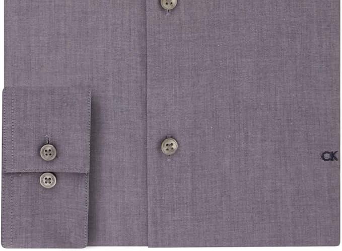 Stretch: Fabric stretches and moves with you for extra comfort. Stretch Collar: Collar Stretches up to half an inch for expandable comfort. Wrinkle Free: Fabric delivers enhanced wrinkle resistance and easy care at home.. Slim Fit: Modern fit with a tapered body and slimmer sleeves for a sleek look that flatters most body shapes. Point Collar: Classic collar thought to lengthen the face & allows for tie knot variety; can be worn with or without neckwear. Adjustable Cuff: Two button positions allow for a more customized, improved fit. No Pocket: Sleek, streamlined design offers a cleaner appearance. Subtle CK logo on left chest.
