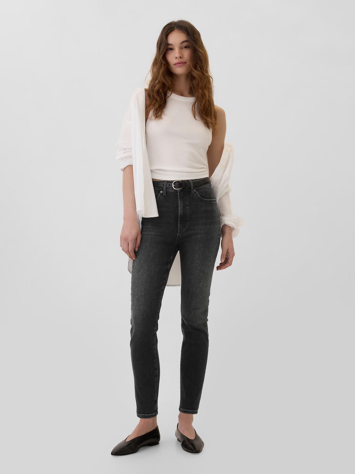 This style is made with 26% recycled contents. Compared to virgin materials, using recycled materials helps to reduce resource use and waste. This product is part of our Washwell program, which uses at least 20% less water as compared with conventional wash methods. We’ve saved over a billion liters of water through Washwell since 2016. Soft stretch denim. Black wash with fading and whiskering. Button closure, zip fly. Classic five-pocket styling. High waisted. Fitted through the hip and thigh. Hits at the ankle. Inseam: 28".