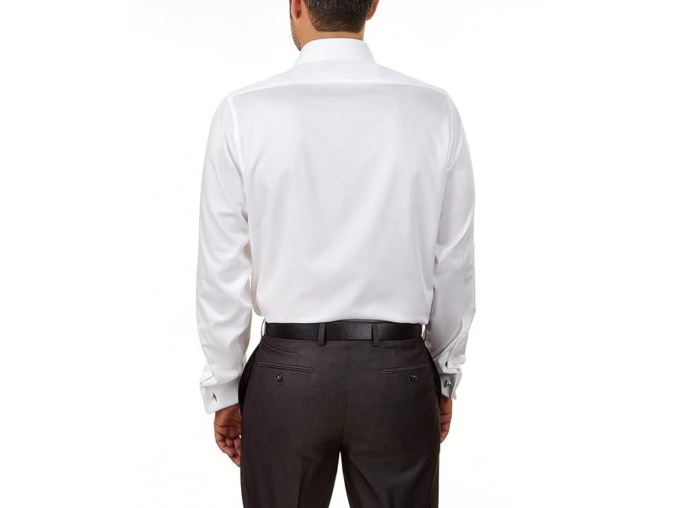 Calvin Klein Men's Dress Shirt Slim Fit Non Iron Herringbone French Cuff - Men's Long Sleeve Button Up : White : 100% Cotton ; Indonesia ; Machine Wash ; Wicking: Designed to wick moisture away from the body to help you feel cool and dry. Non-Iron Fabric: Resists wrinkles to keep you looking crisp all day; easy care, no ironing necessary. ; Slim Fit: Modern fit with a tapered body and slimmer sleeves for a sleek look that flatters most body shapes ; Spread Collar: Modern traditional collar with the tips pointed outwards, allowing for tie knots of all sizes; can be worn with or without neckwear. French Cuff: Stylish, more formal cuff requiring cuff links. No Pocket: Sleek, streamlined design offers a cleaner appearance.
