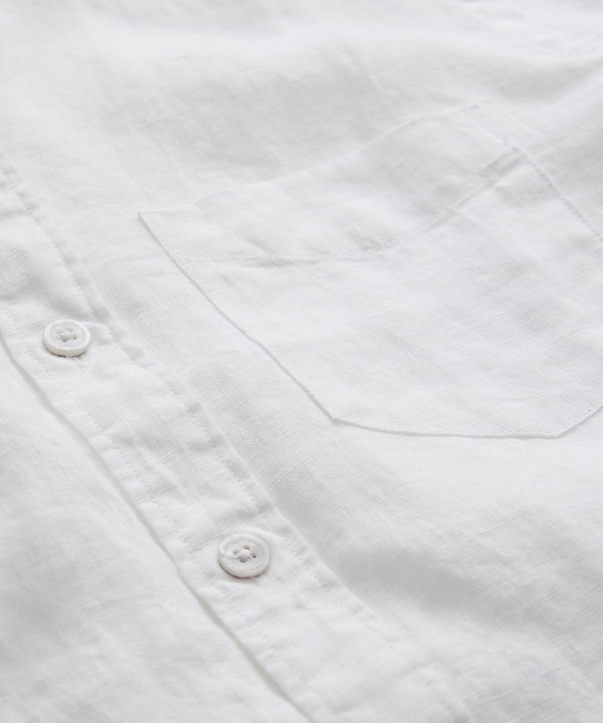 Slim fit Sea Soft Linen Band Collar Long Sleeve Shirt in White