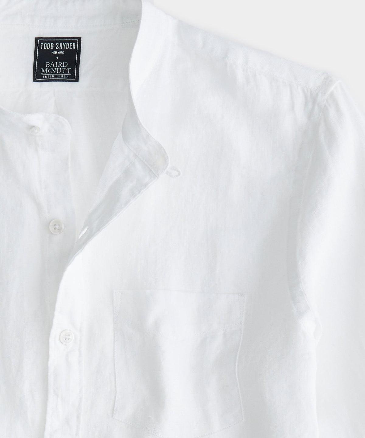 Shake up your warm-weather shirt game with this modern spin on a staple: the linen shirt. Our take features a clean band collar, one of our favorite options for easy layering wear it beneath a sweater (or sweater vest, maybe), sport coat or a chore coat. Or, of course, throw it on solo, with a pair of cuffed trousers for a casual but work-friendly look. It's crafted from piece-dyed Irish linen for breathable, all-season comfort. The Baird family business was established in 1912 on Ireland's picturesque northwest coast in Donegal. Today, Baird McNutt produces some of the world's finest linen out of the Shankbridge dyeing and finishing works, which was originally built in 1798. 100% Linen; Piece-Dyed ; Band Collar; Fabric from Baird McNutt in Ireland; Made in Portugal; Slim Fit; Machine wash gentle cycle, do not bleach. Do not tumble dry, lay flat to dry, warm iron as needed. Dry clean.