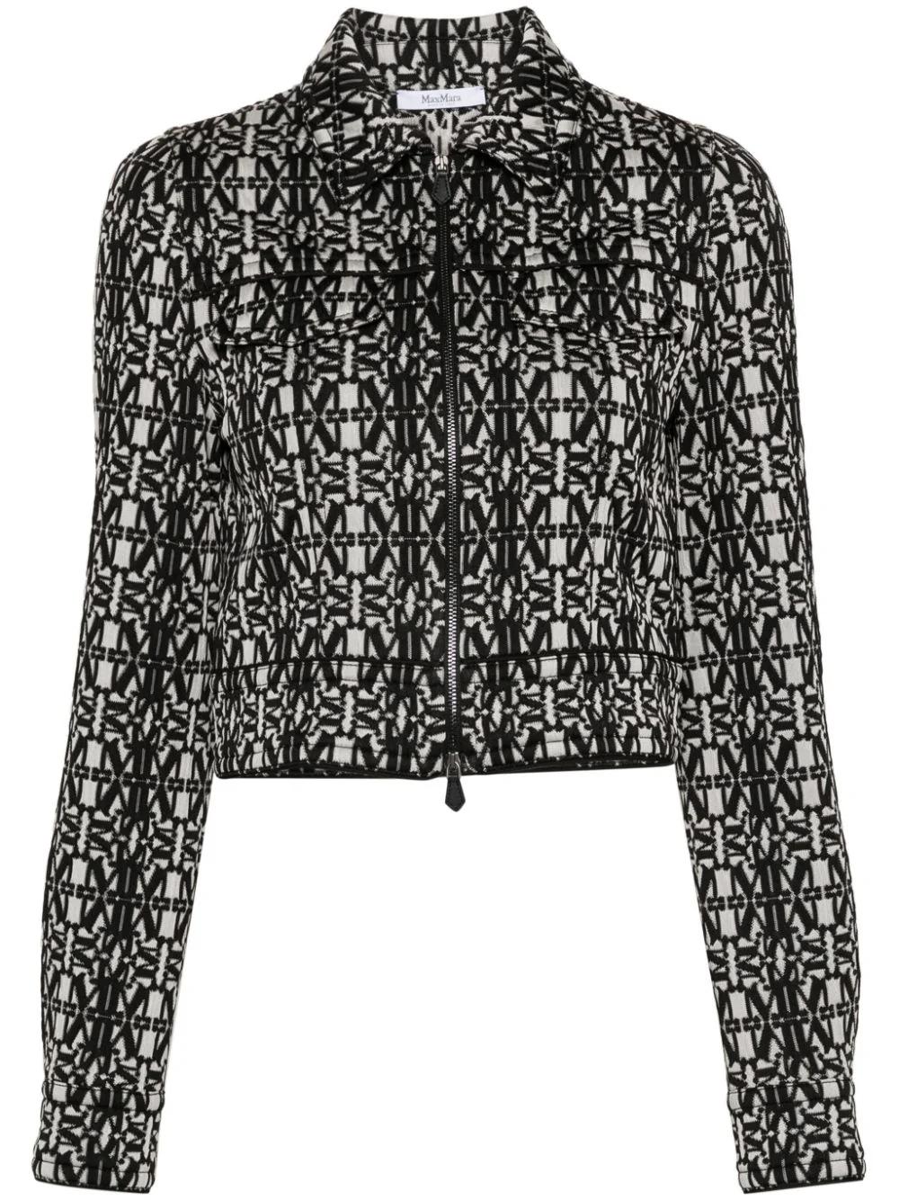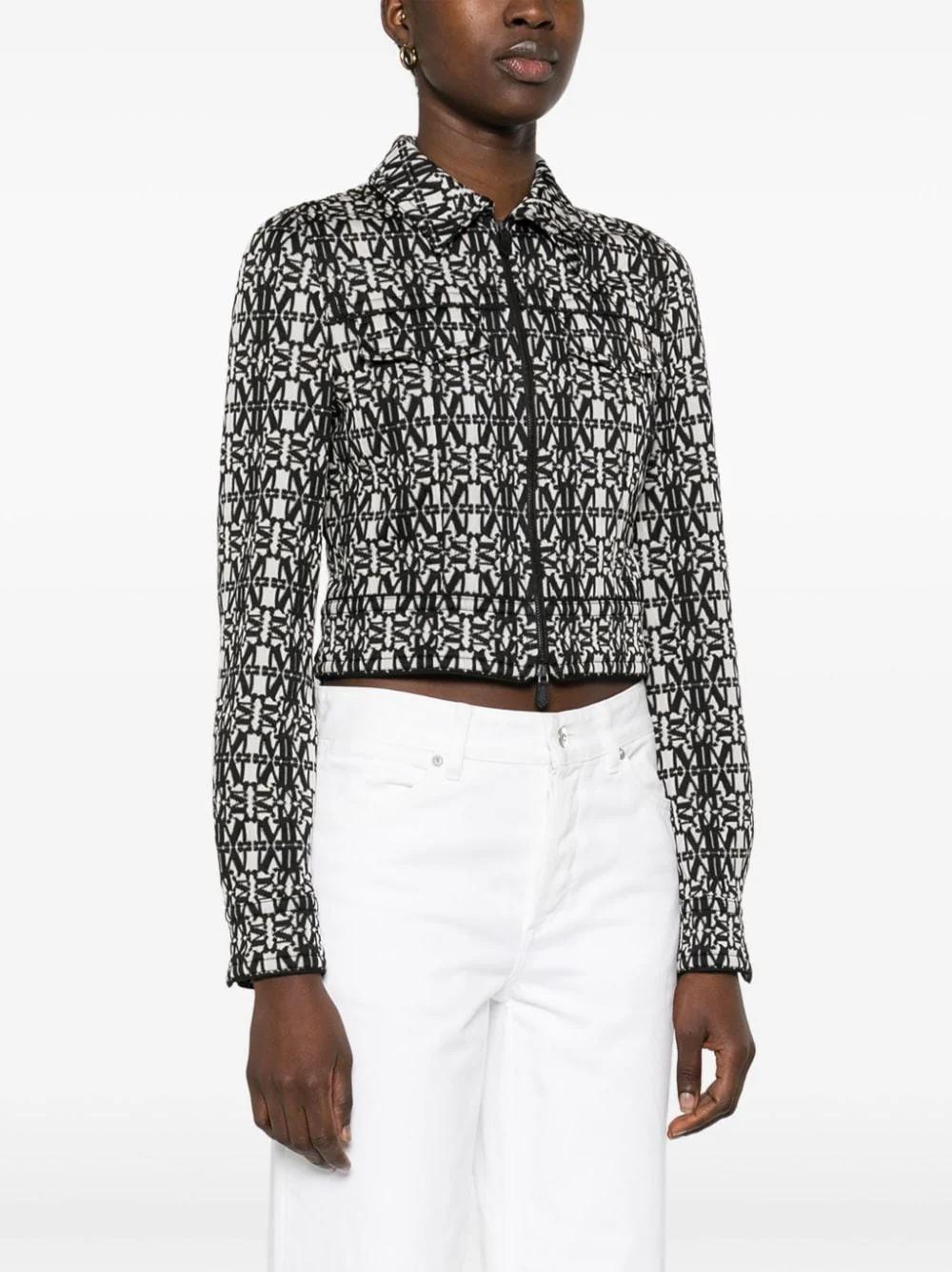 white/black monogram pattern classic collar long sleeves buttoned cuffs two chest flap pockets cropped front two-way zip fastening This piece fits true to size. We recommend you get your regular size Model is 1,75m / 5ft 8in wearing size 40 (IT)