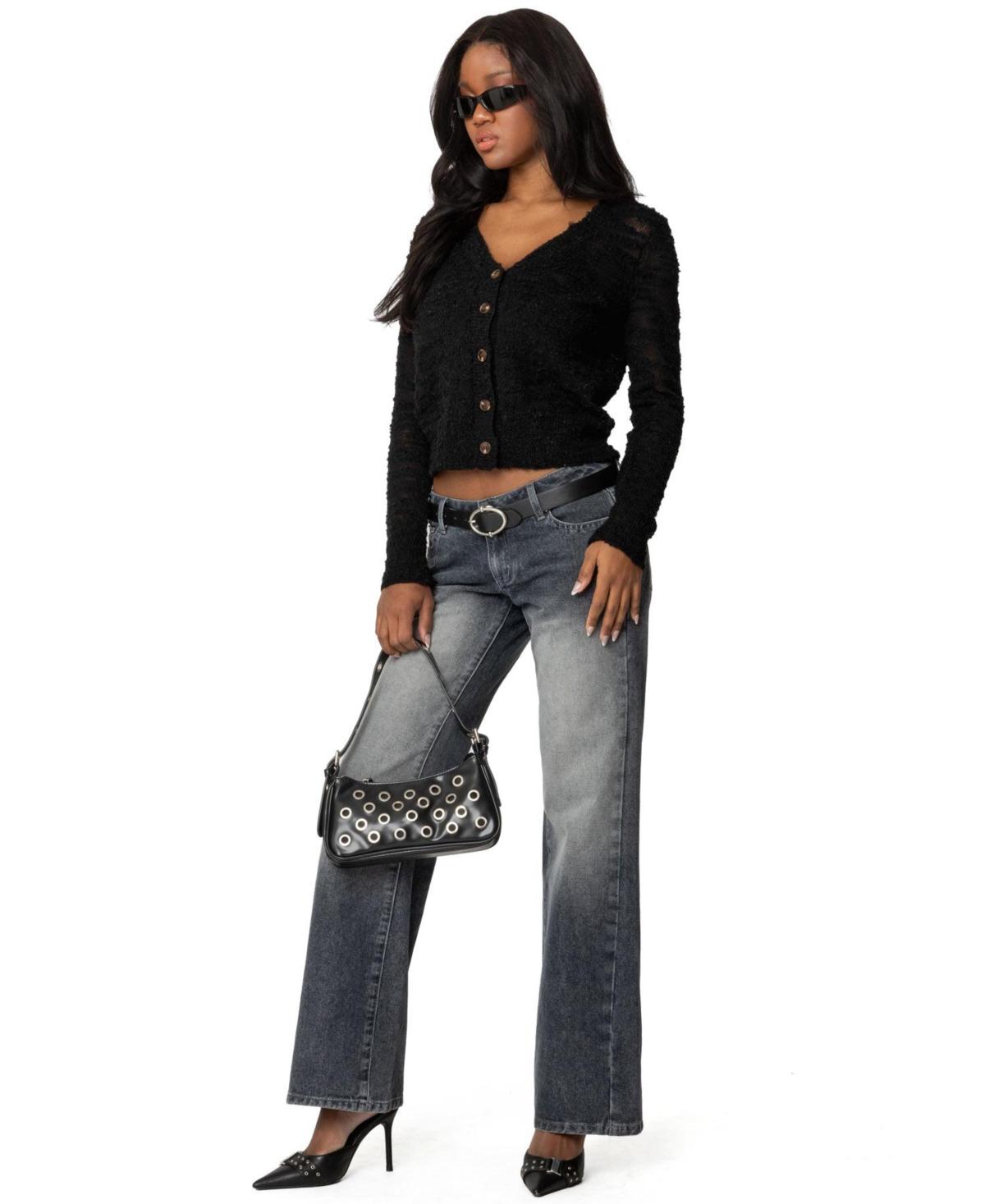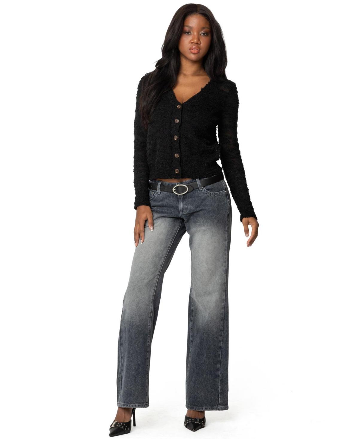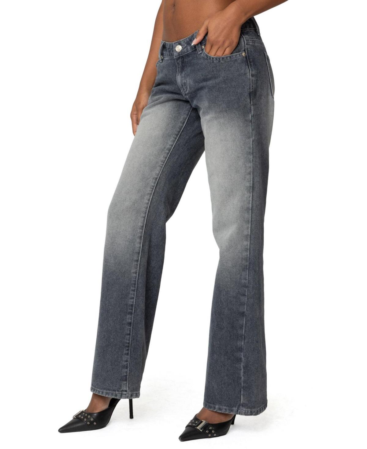 Edikted Womens Alysse Low Rise Washed Jeans - Gray washed