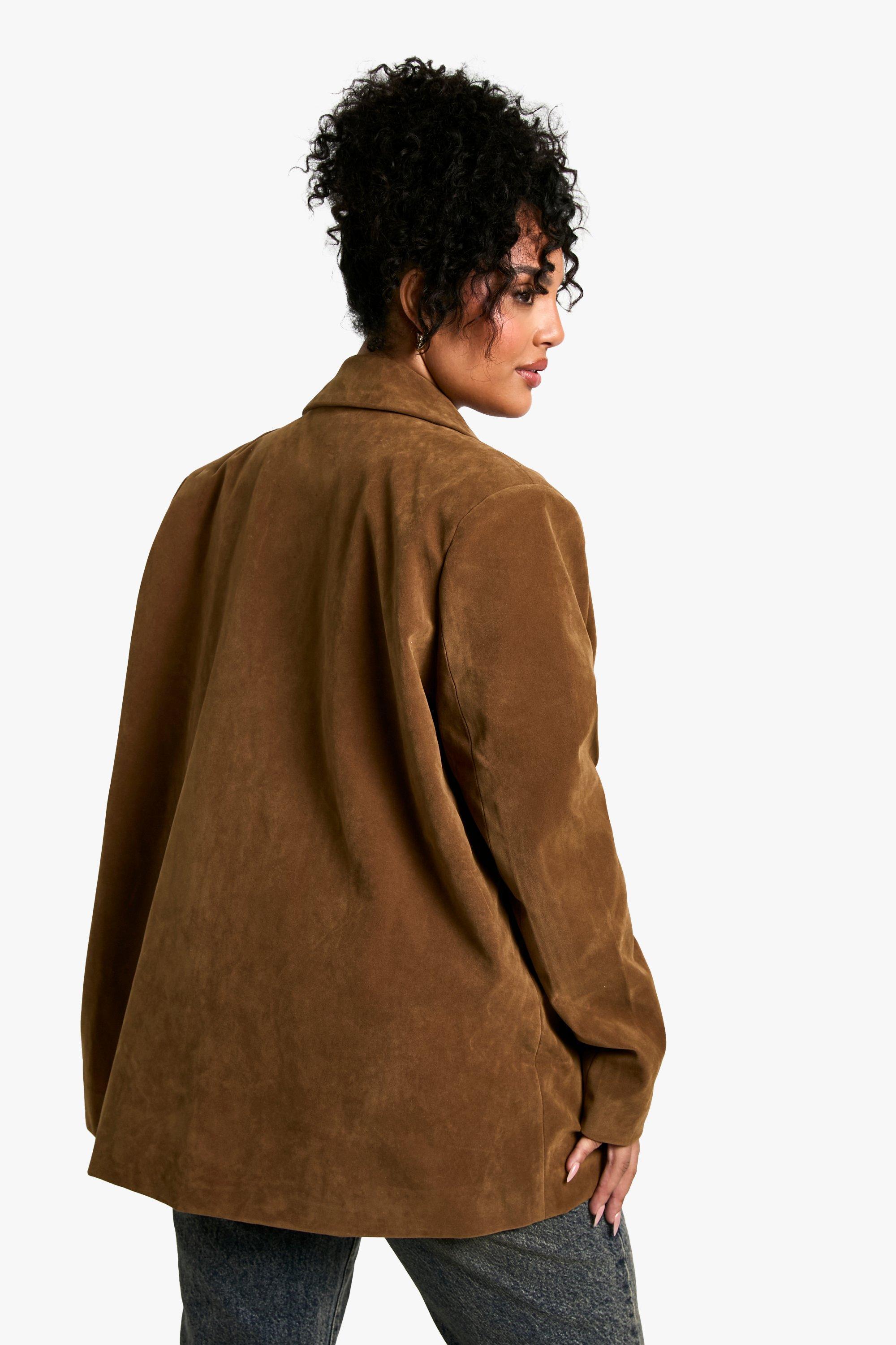 Womens Plus Suede Single Breasted Oversized Blazer - Brown - 24