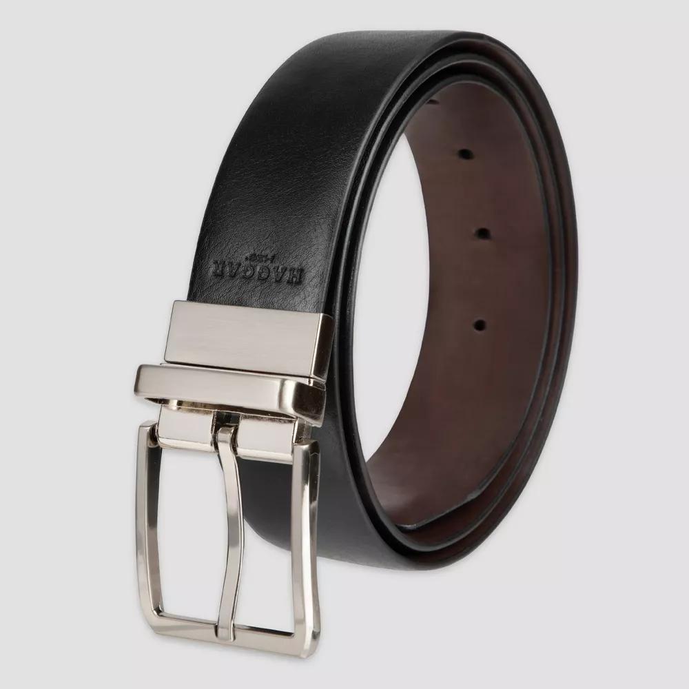 The Haggar H26 Men's Reversible Dress Belt offers unmatched versatility and style for your wardrobe. Designed with a sleek 1.4-inch width, it seamlessly transitions from black to brown, providing two looks in one belt to suit any occasion. Whether it's a business meeting or a formal event, this reversible belt completes your polished look effortlessly.