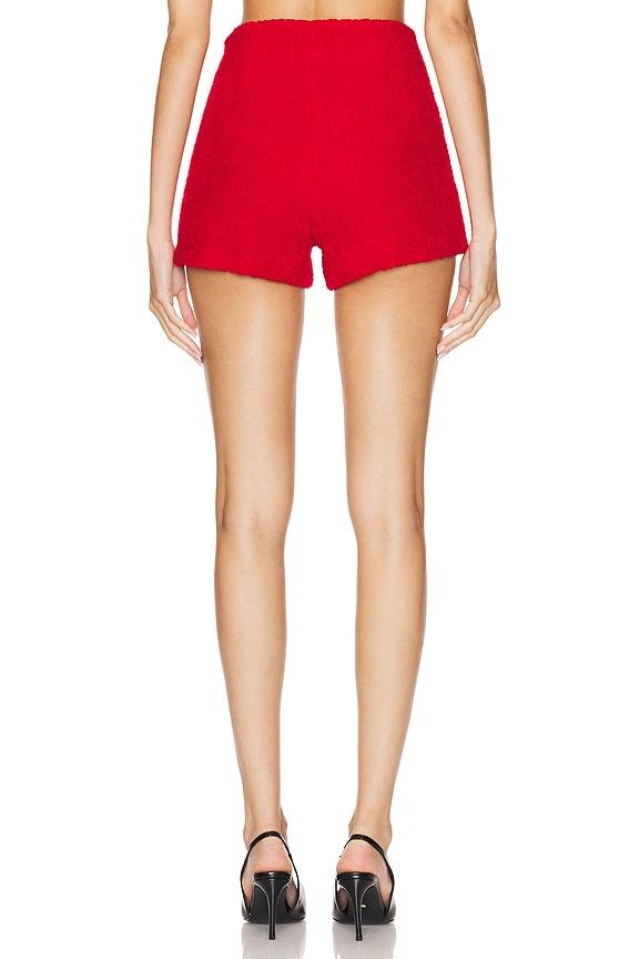 Self: 70% polyester, 30% wool. Lining 1: 100% polyester. Lining 2: 55% polyurethane, 45% polyester. Made in China. Dry clean. Fully lined. Hidden side zipper closure. Shorts measures approx 12.5" in length.