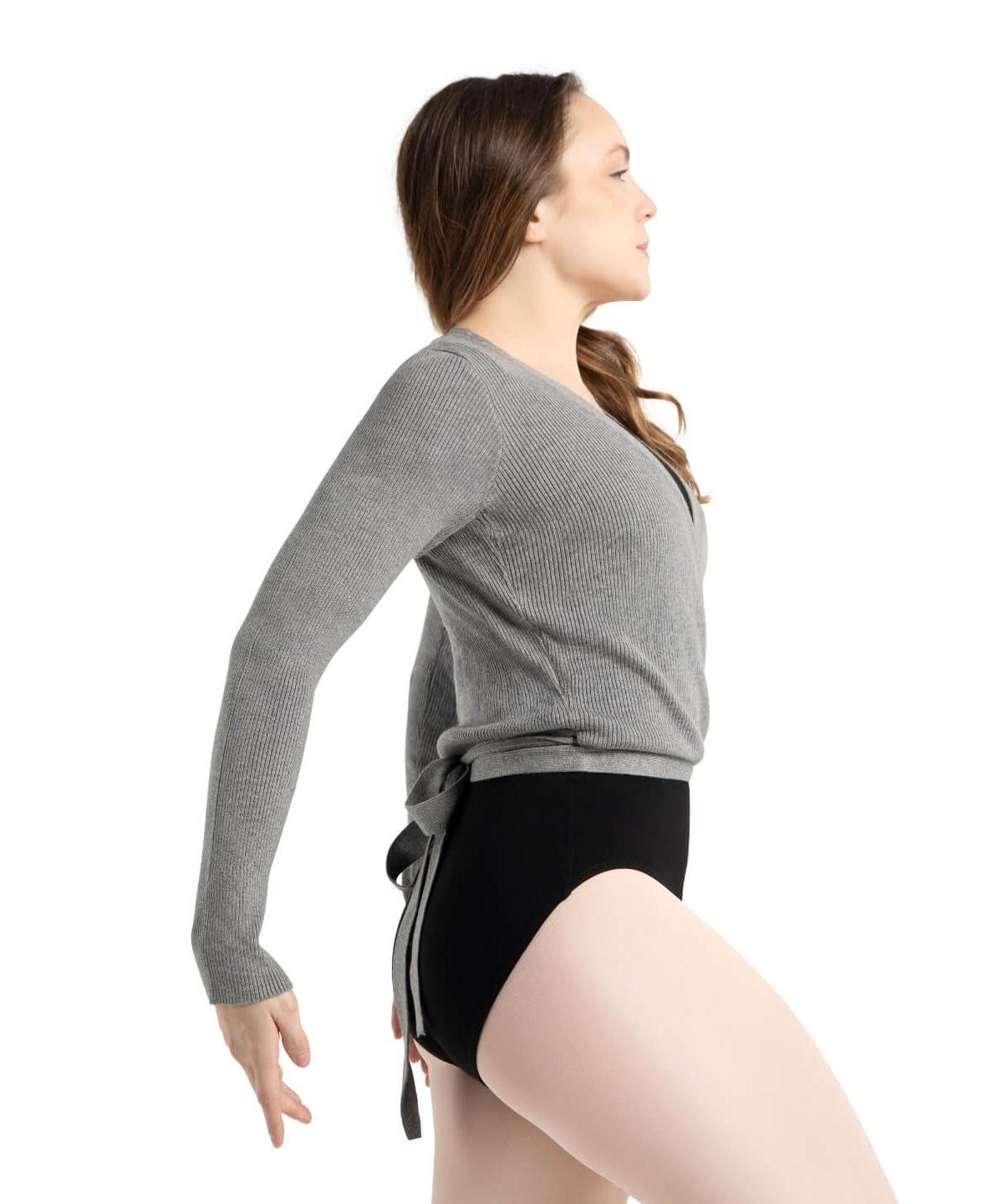 Knit Wrap Sweater with Improved FitIf your studio space runs a little cold, our Wrap Sweater is the perfect solution. Made of a soft knit blend. Features long sleeves and a self-tie for multiple tying options. Ribbing detail creates a fitted shape that highlights the dancer's form. Layer over leos or everyday wear to stay warm no matter where you are. Product Features: Ribbed wrap top 50% Rayon, 28% Nylon, 22% Polyester V-neck Self-tie Long sleeves Recommended care: Machine wash cold, delicate cycle and hang dry.